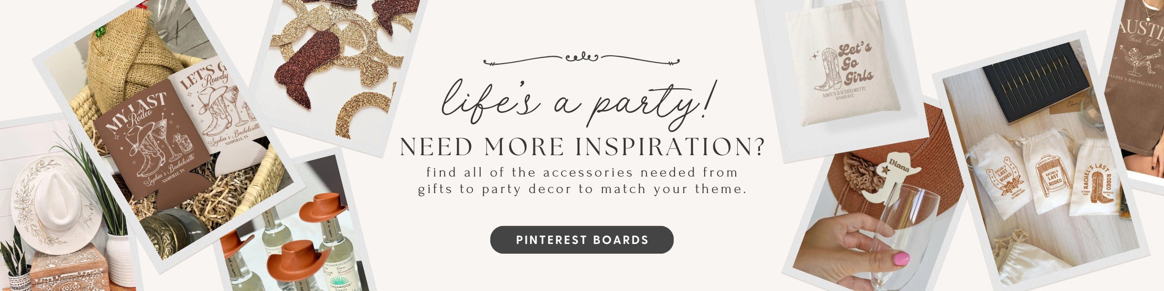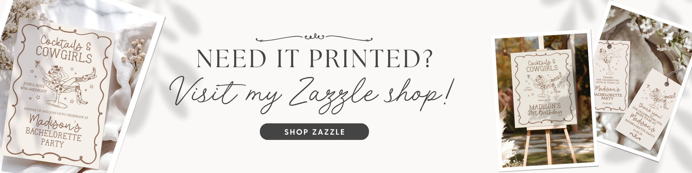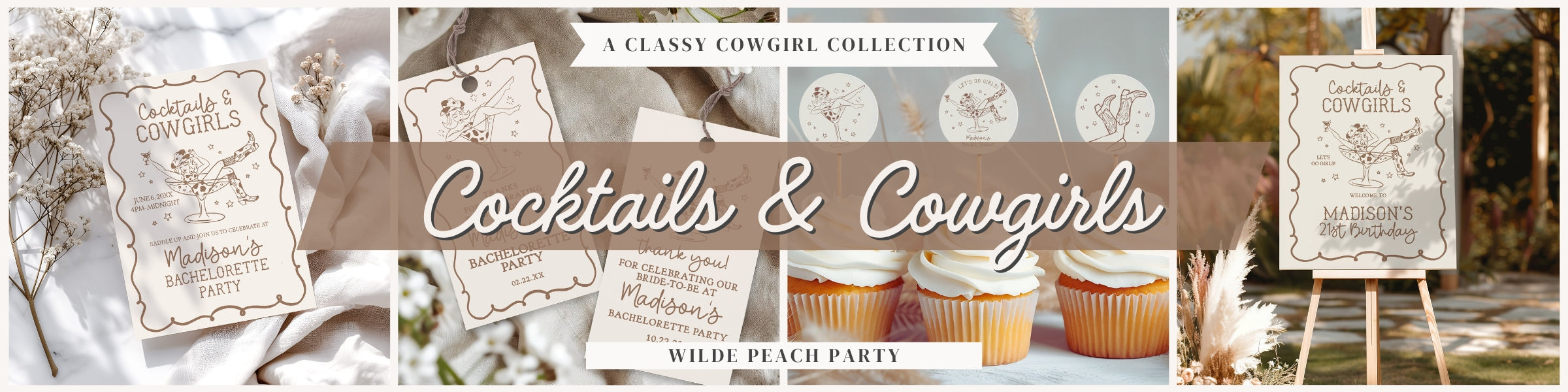 Beige Cocktails and Cowgirls Birthday Bundle Template