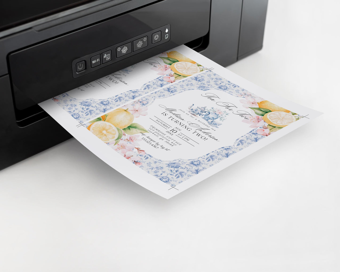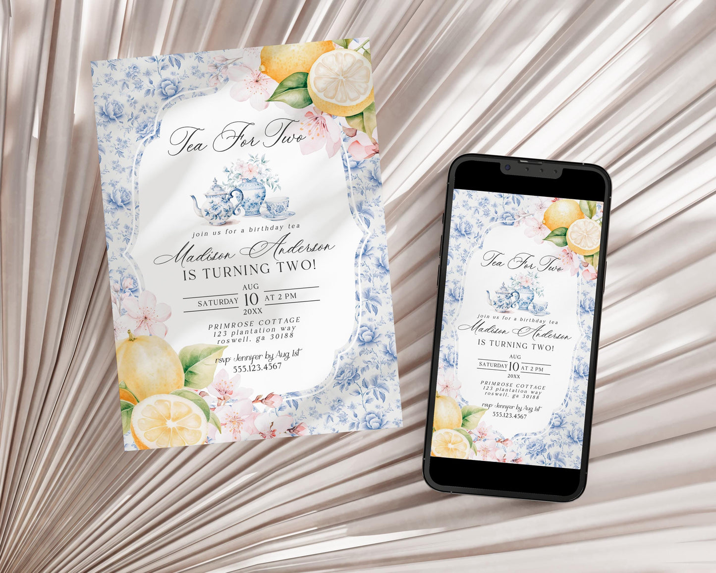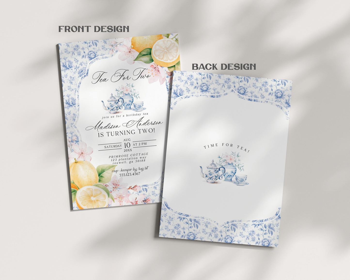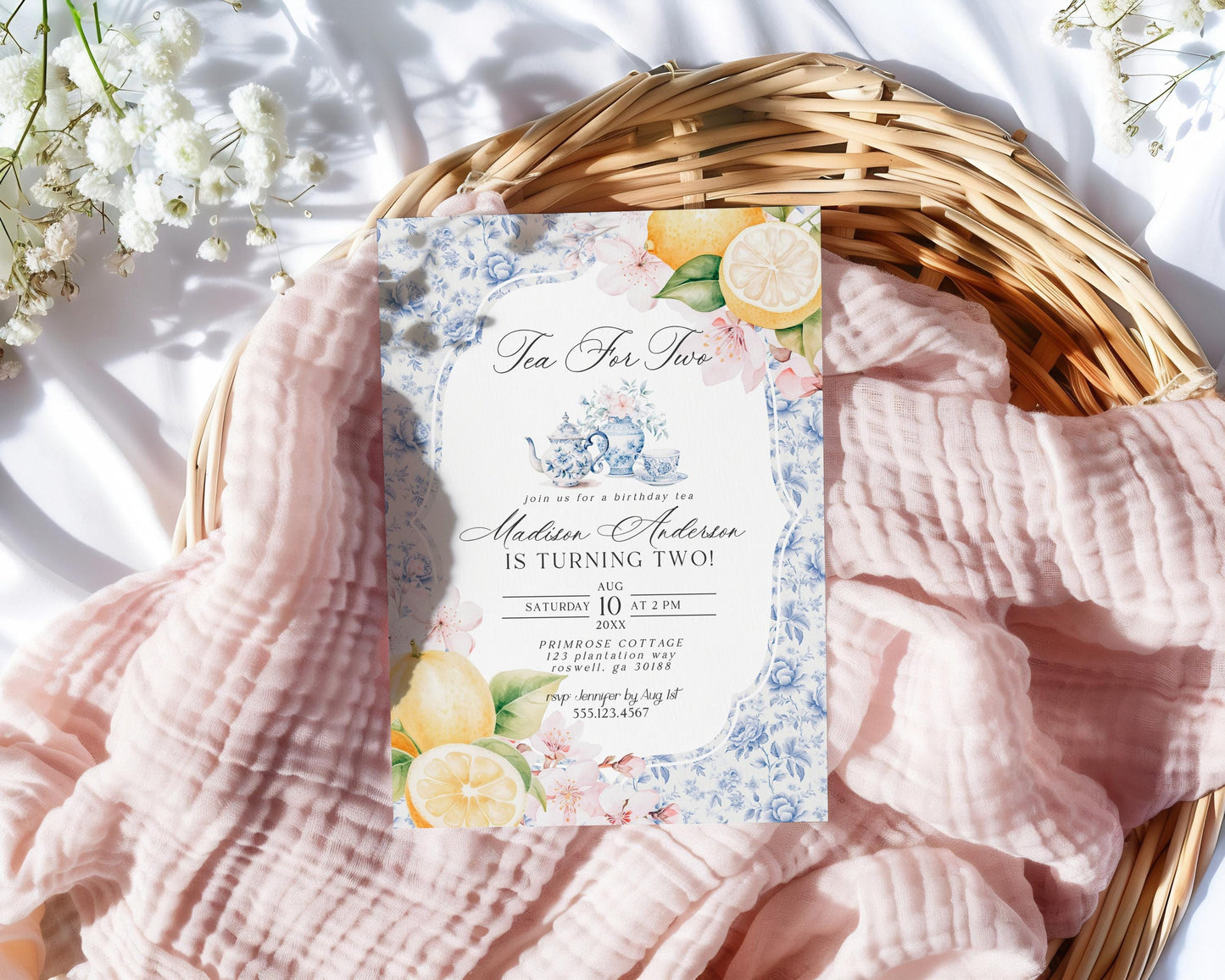 Blue Chinoiserie Tea 2nd Birthday Invitation Printable Template