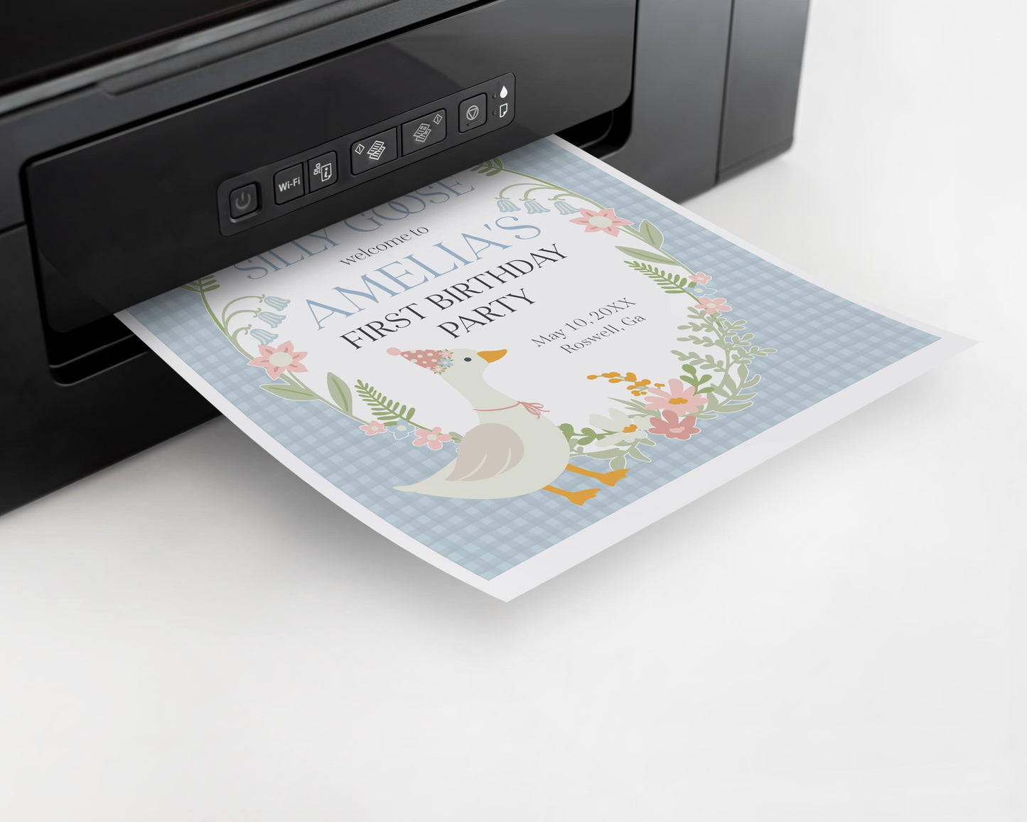 Blue Floral Silly Goose Birthday Welcome Sign Printable Template