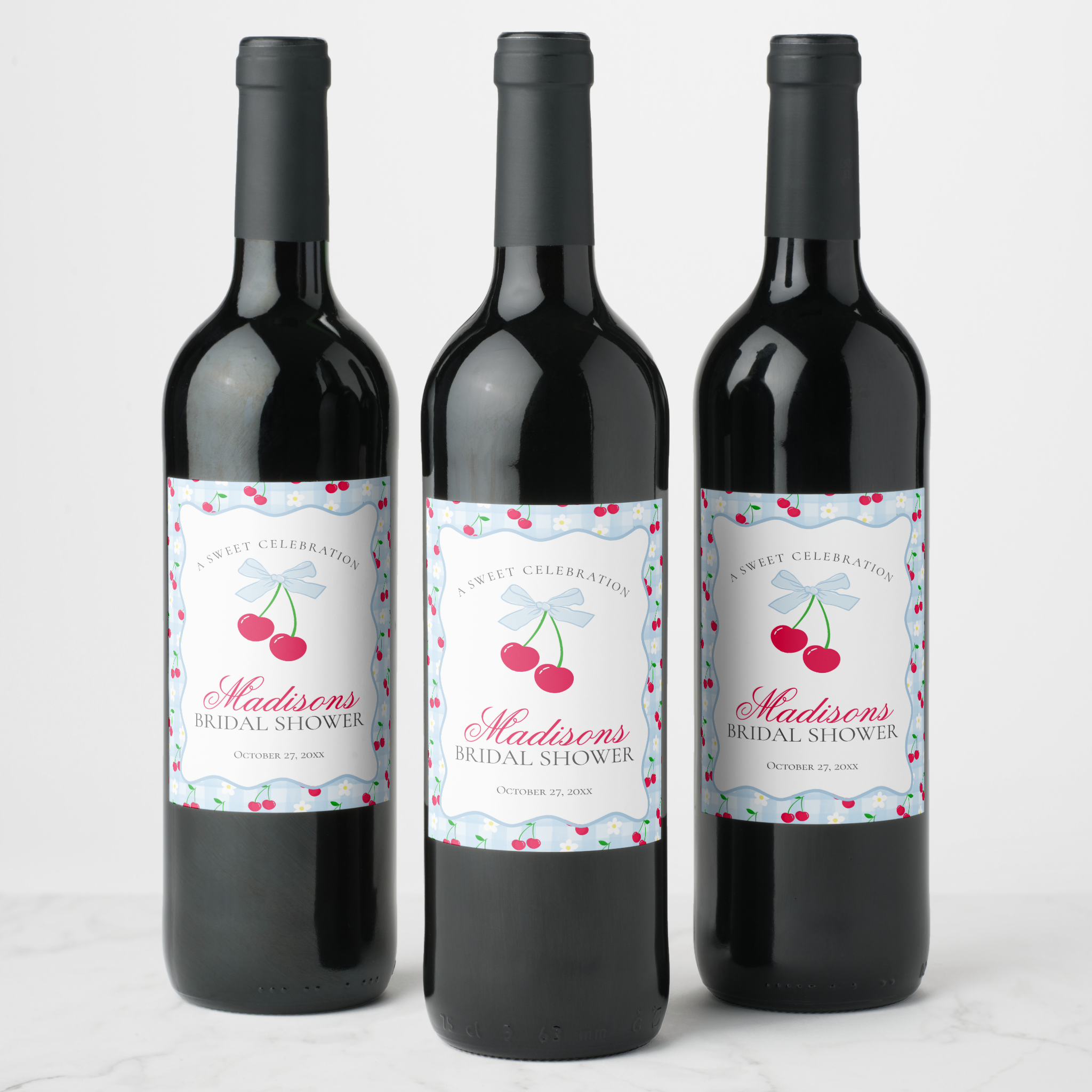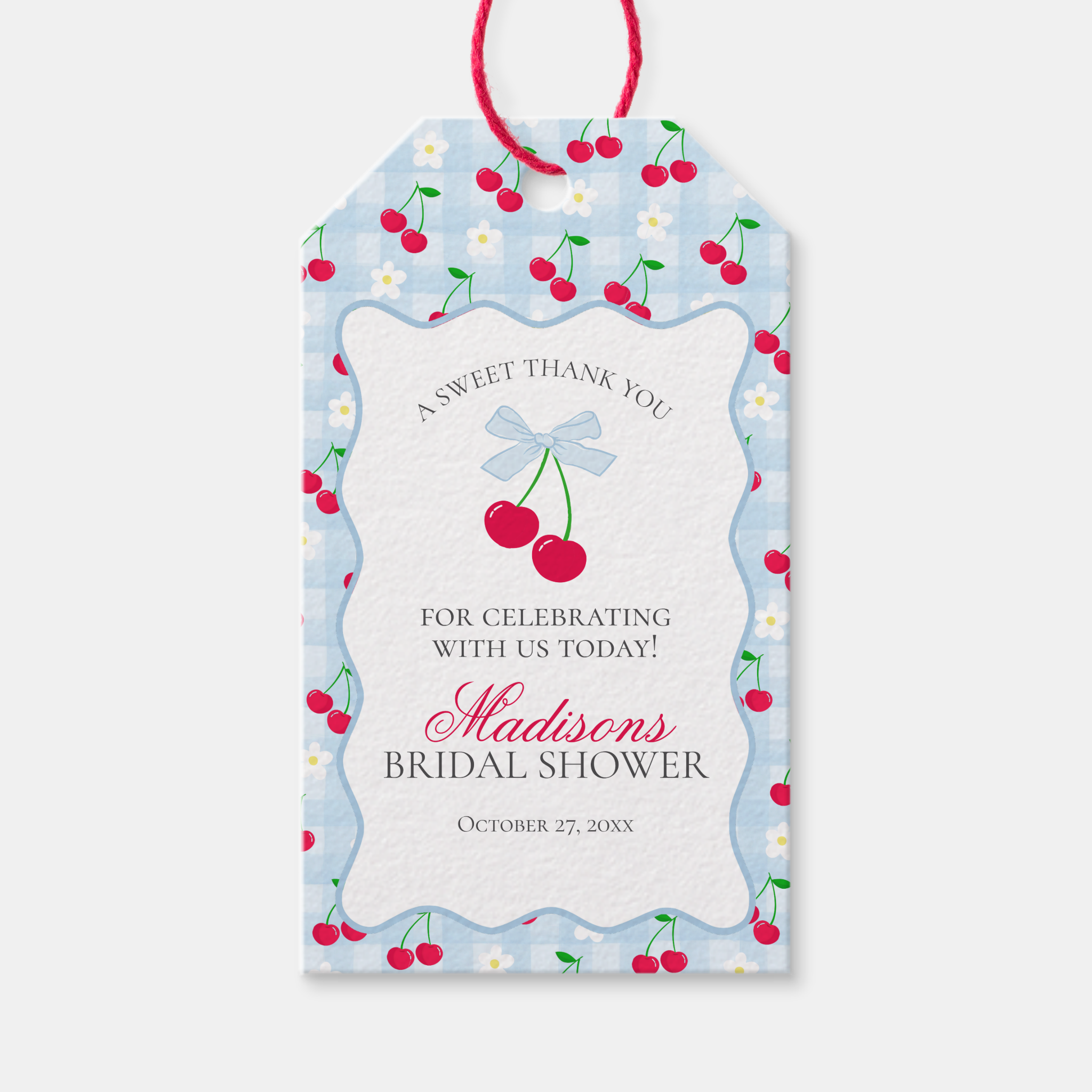 Blue Cherry Gingham Bridal Shower Favor Tags Template