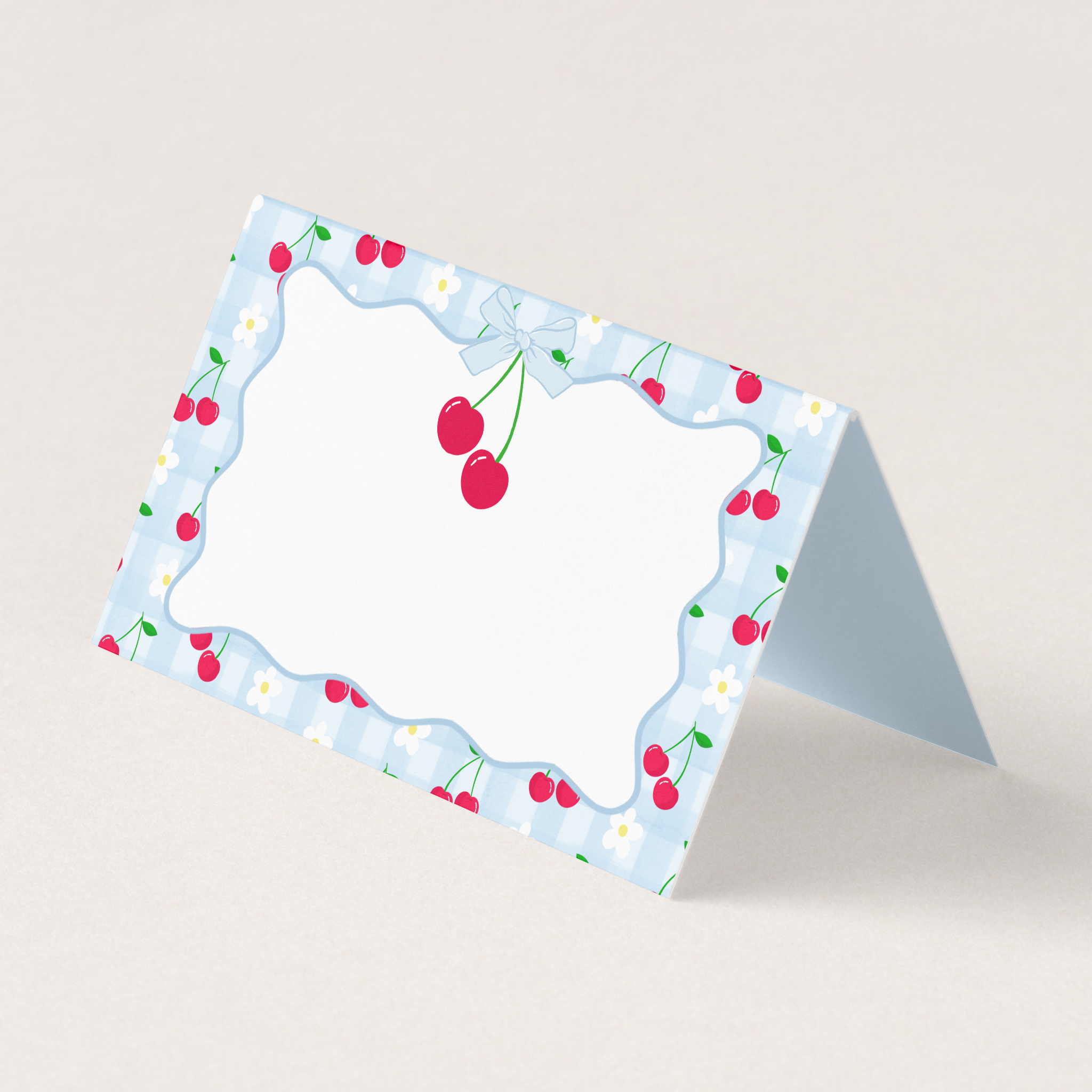 Blue Cherry Gingham Cards & Gifts and Favors Sign Template Set