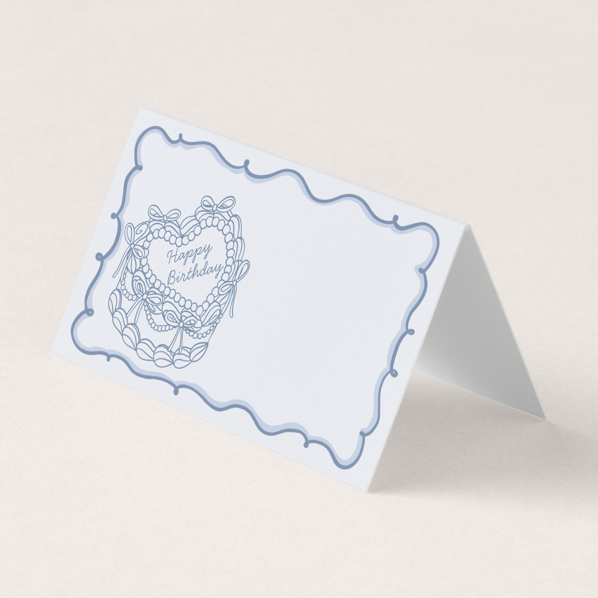 Blue Coquette Heart Cake Place Cards for Birthday Template