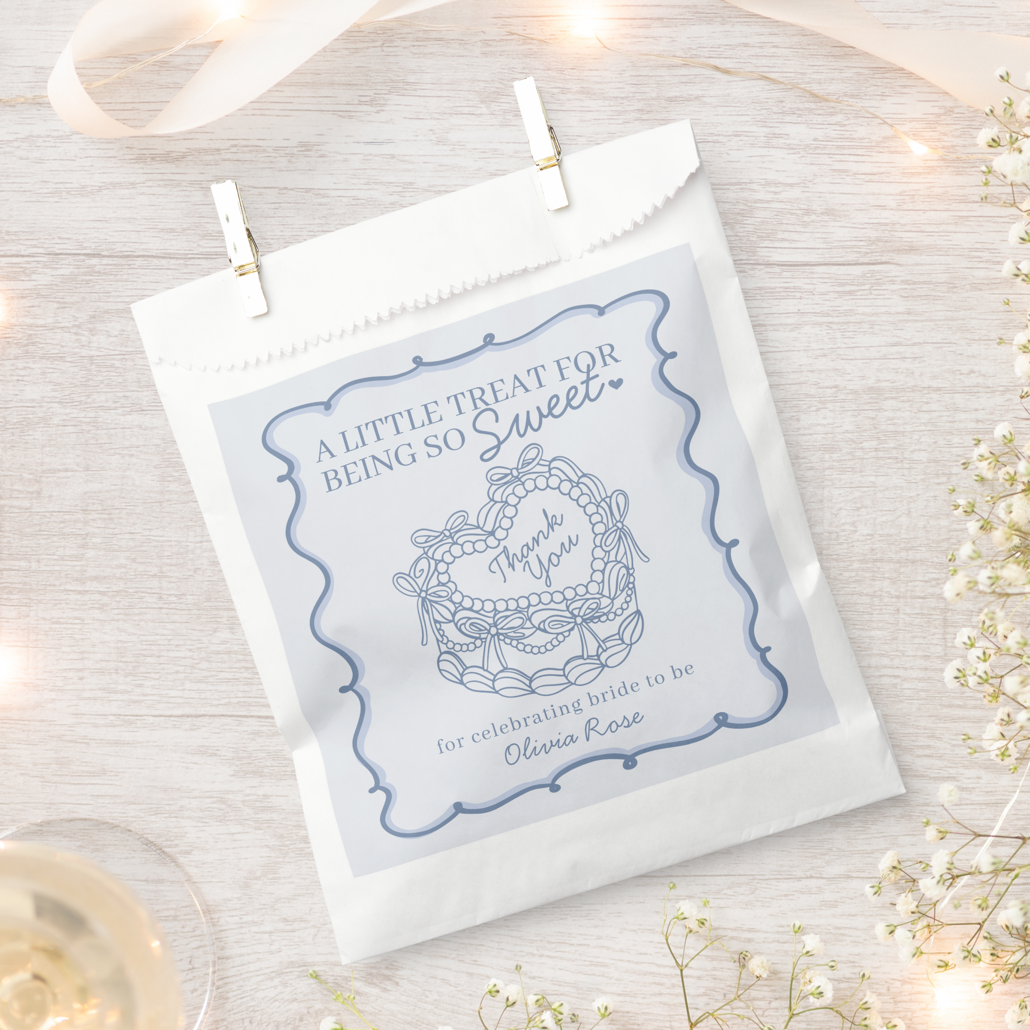 Blue Retro Coquette Heart Cake Favorite Memories Bride Girl Template