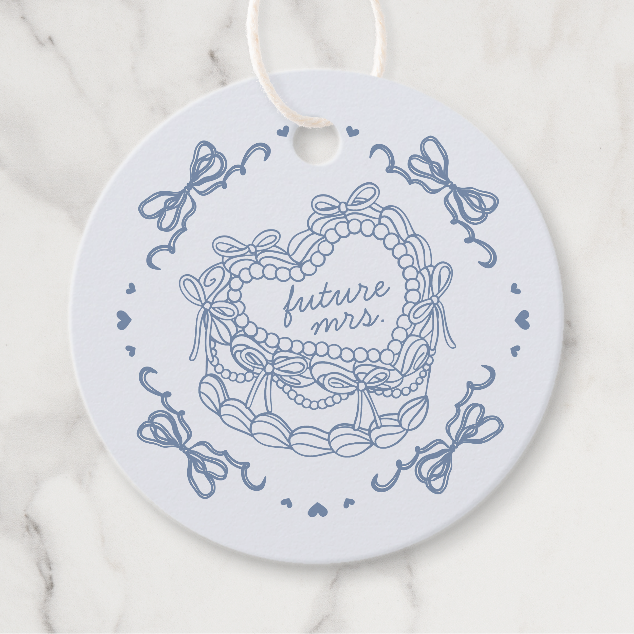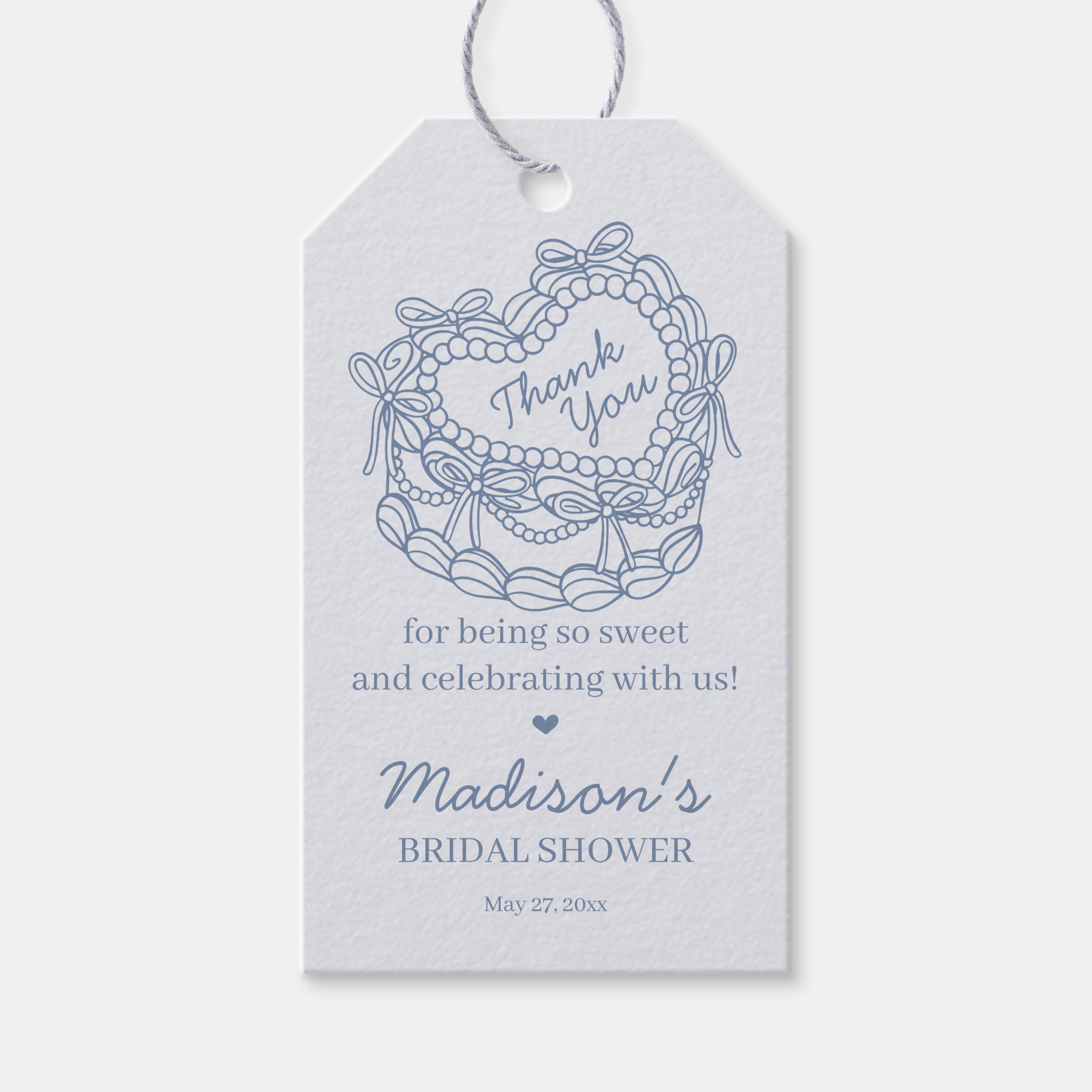 Blue Coquette Heart Cake Bridal Shower Favor Tags Printable Template