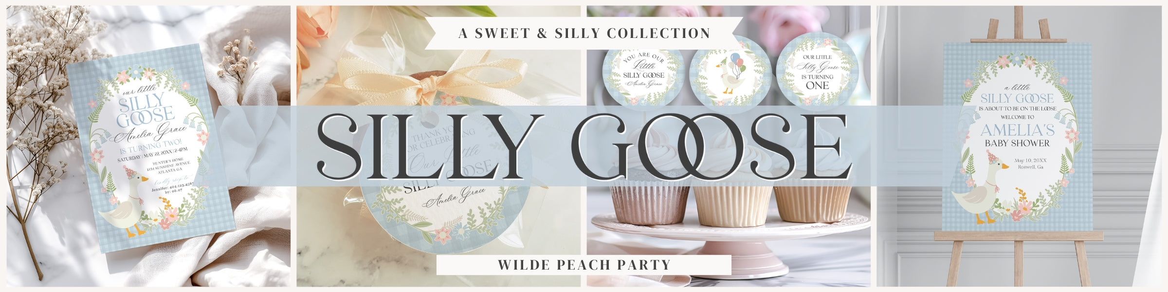 Blue Floral Silly Goose First Birthday Bundle Printable Template