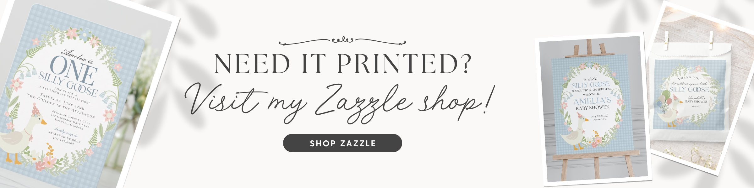 Whether you love to DIY your party decor or prefer your party supplies printed & ready to go, we’ve got you covered! Shop our Zazzle shop for printed party decor to find the perfect design for your next celebration.
