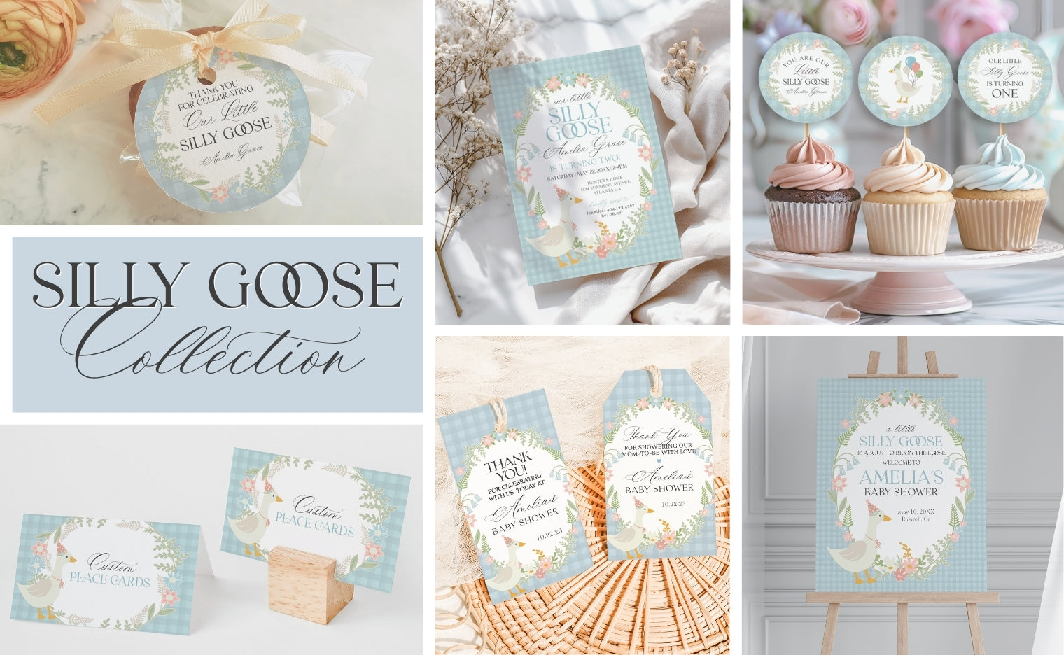 Blue Floral Silly Goose Baby Shower Bundle Printable Template