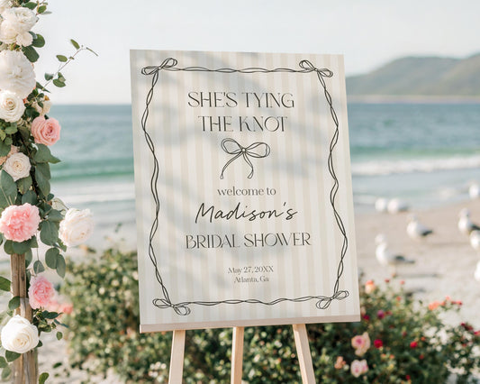 Blue Coquette Bow Bridal Shower Welcome Sign Template