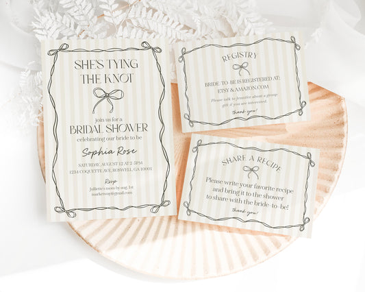 Beige Bow Bridal Shower Invitation Printable Template