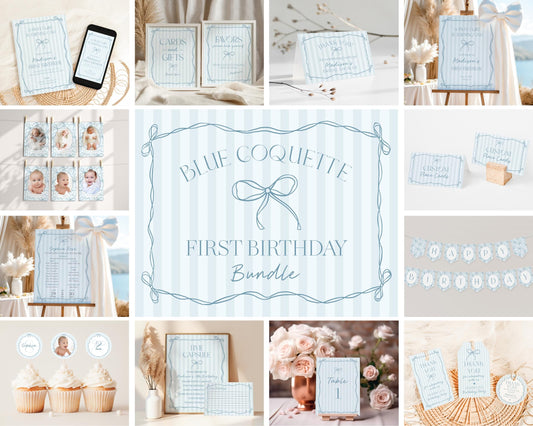 Blue Cherry Gingham First Birthday Bundle Printable Template