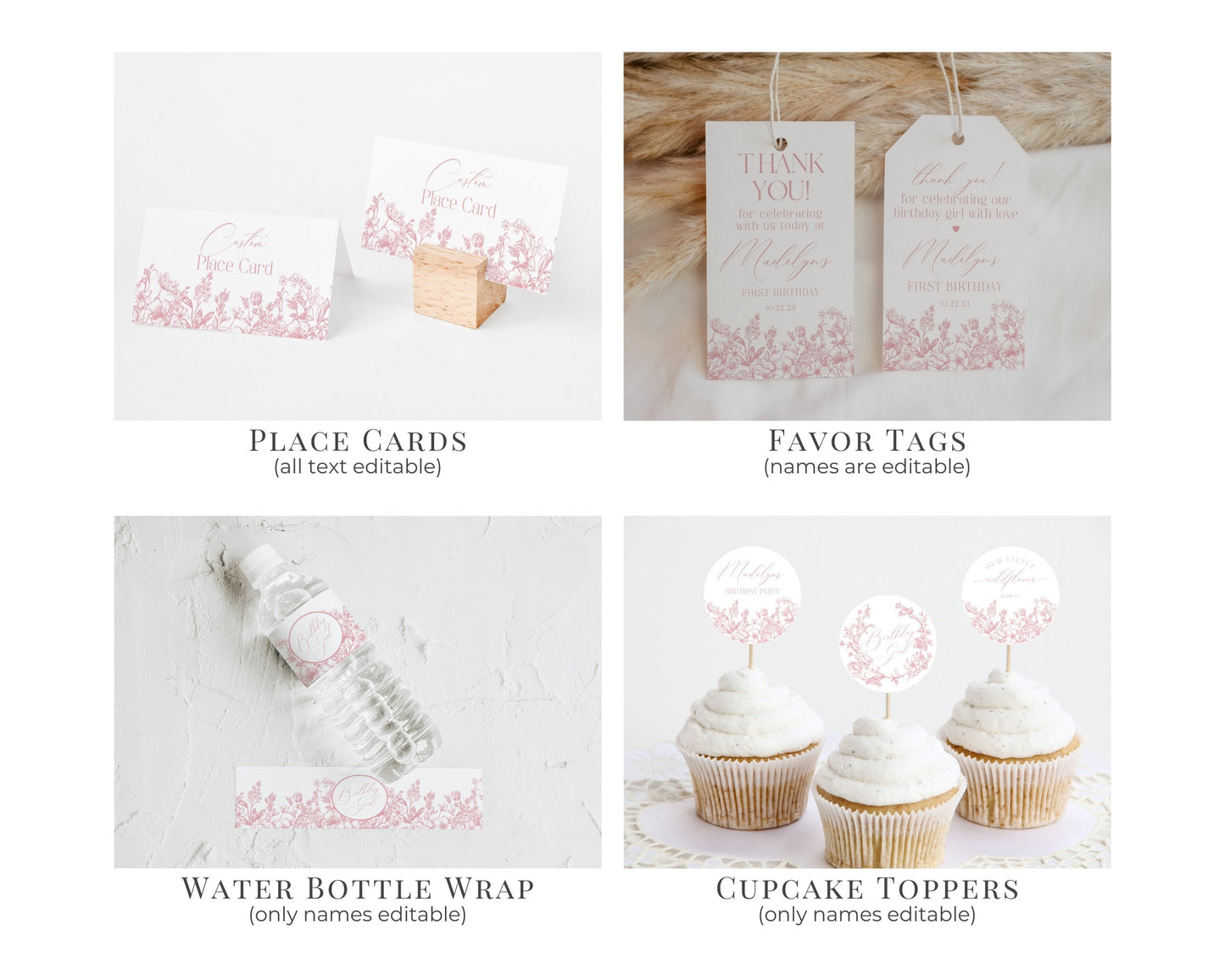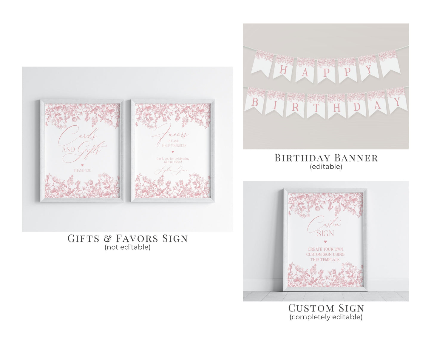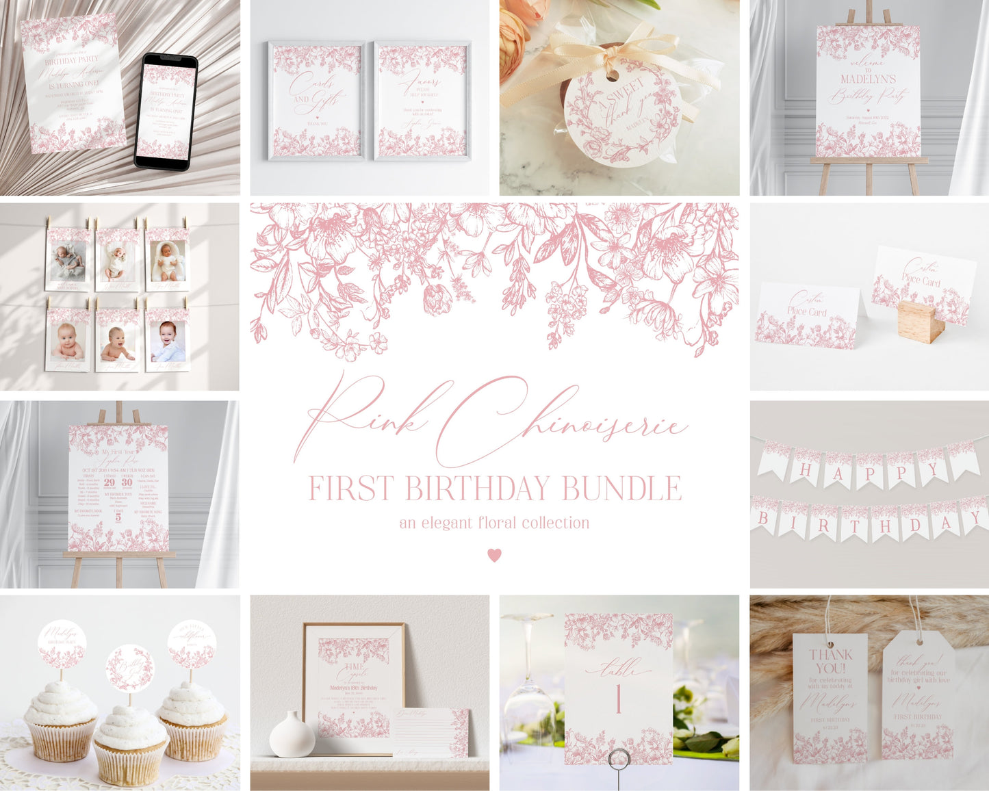 Pink Chinoiserie First Birthday Bundle Printable Template