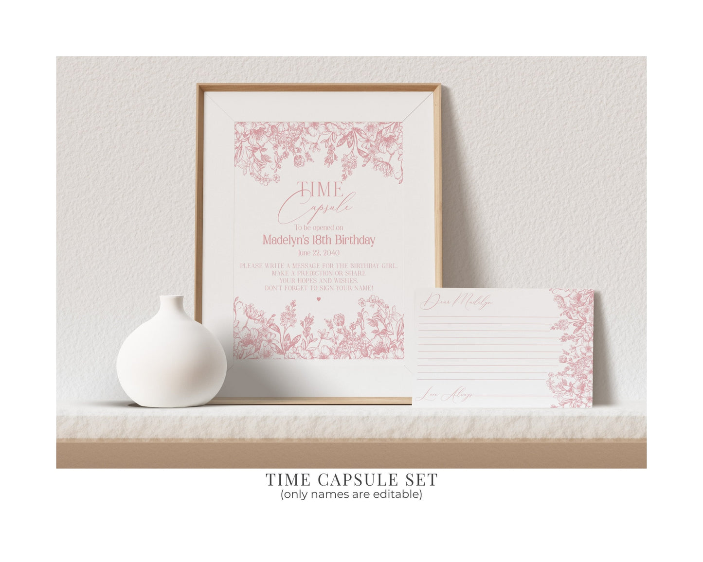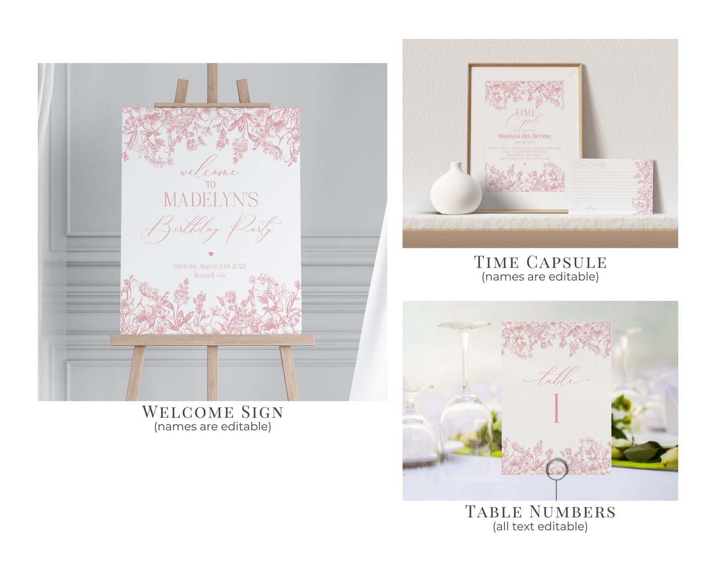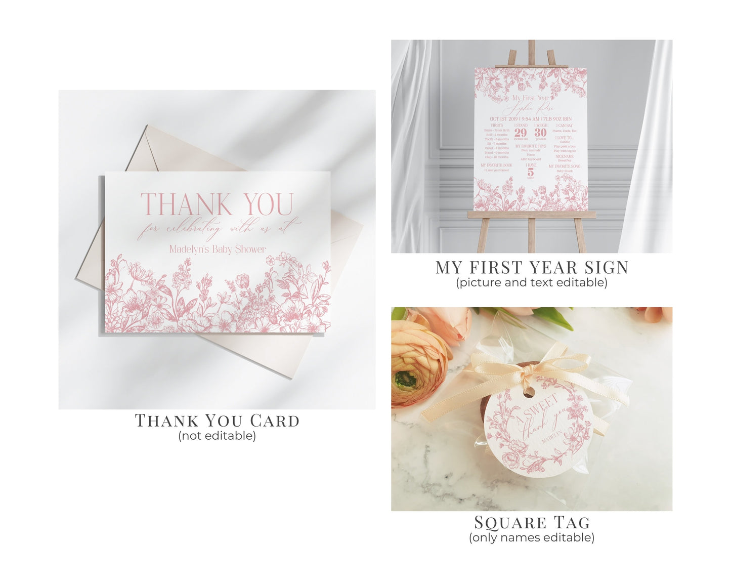 Pink Chinoiserie First Birthday Bundle Printable Template