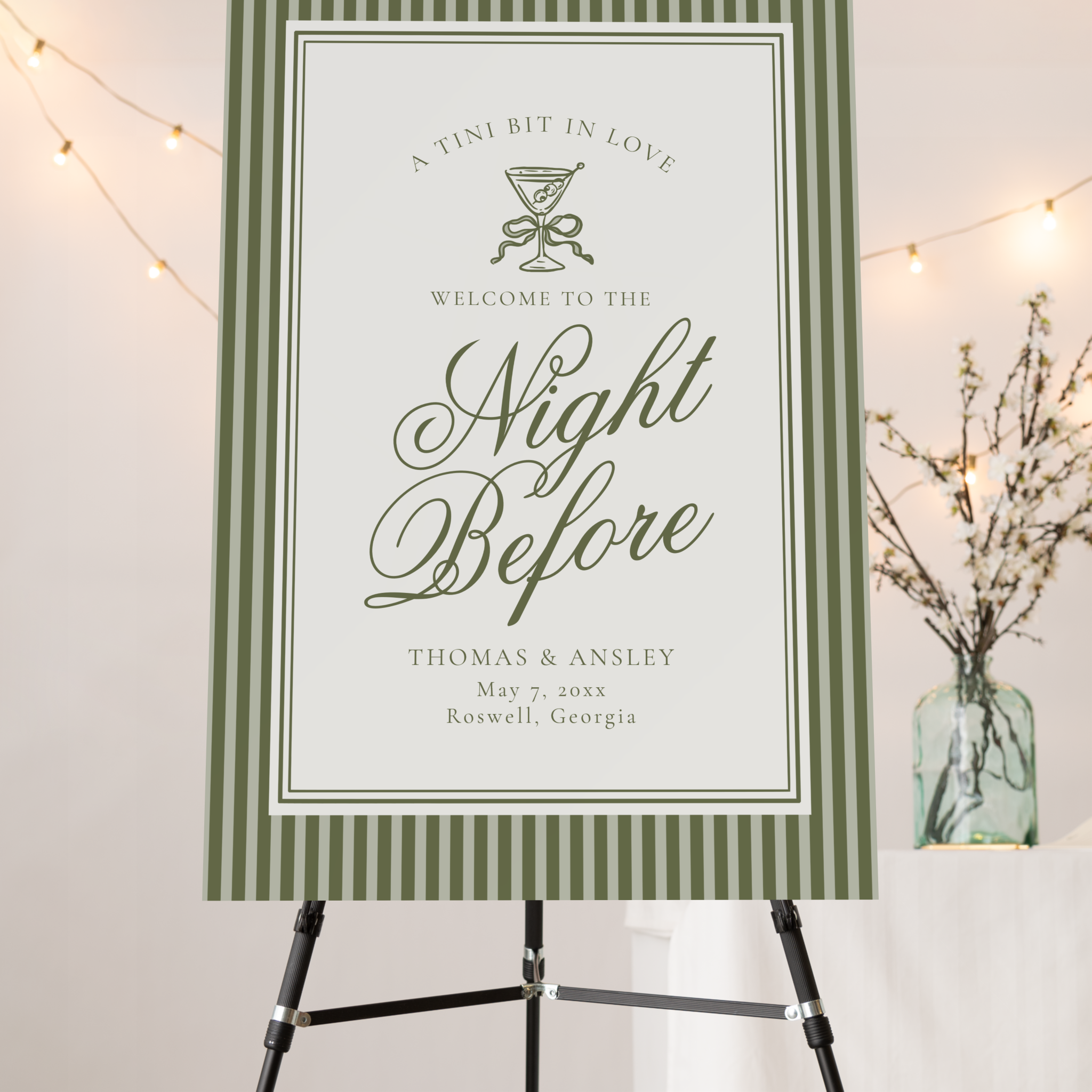 Martini Striped Rehearsal Dinner Welcome Sign Template