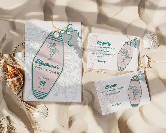 Pink Retro Resort Key Bridal Shower Bundle Template