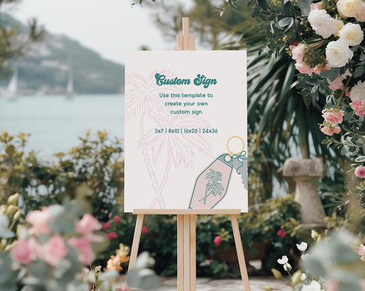 Pink Resort Key Cards & Gifts and Favors Sign Template