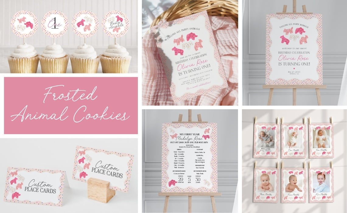 Frosted Animal Cookies First Birthday Party Bundle Printable Template