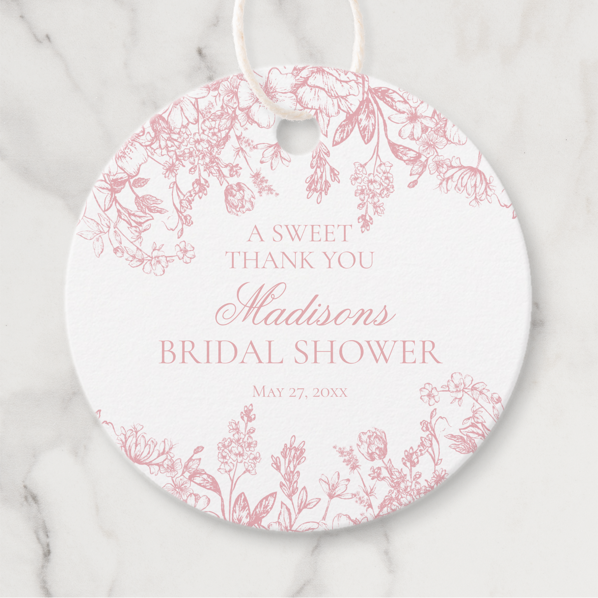 Pink Chinoiserie Bridal Shower Favor Tags Printable Template