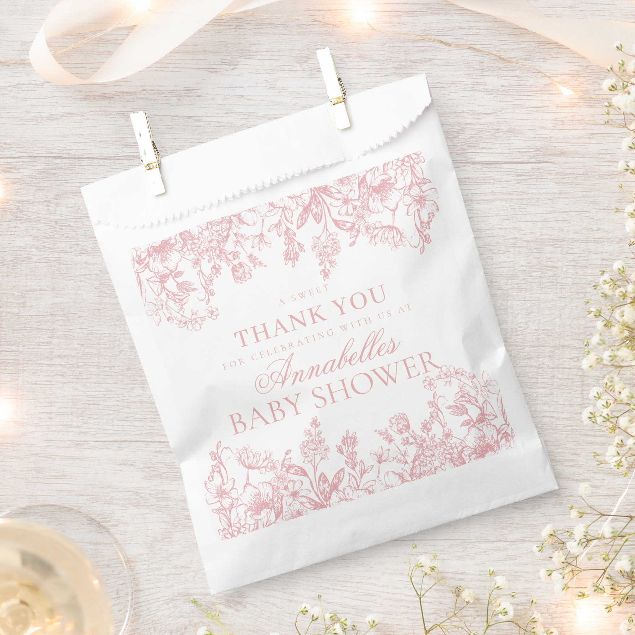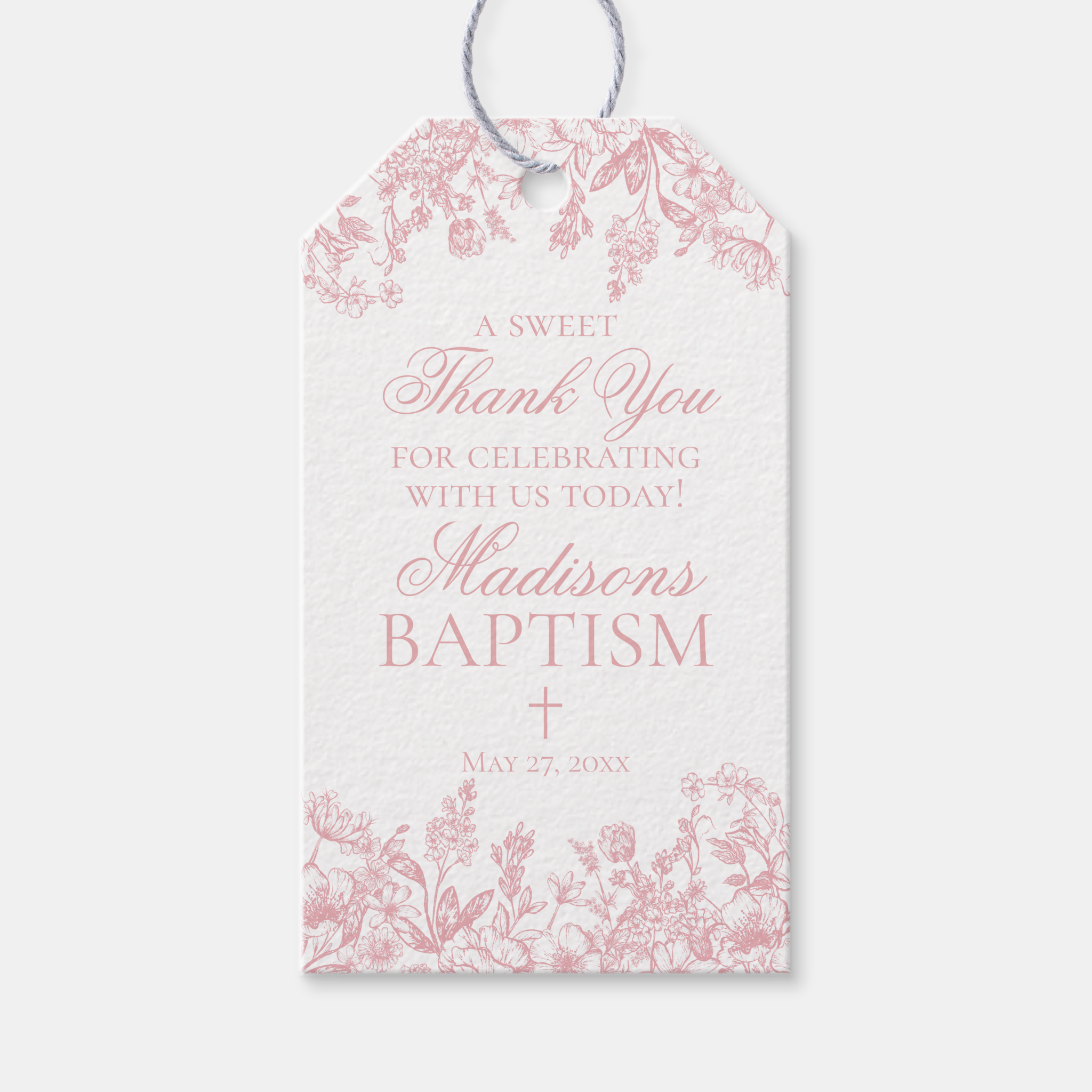 Pink Chinoiserie Baby Shower Favor Tags Printable Template