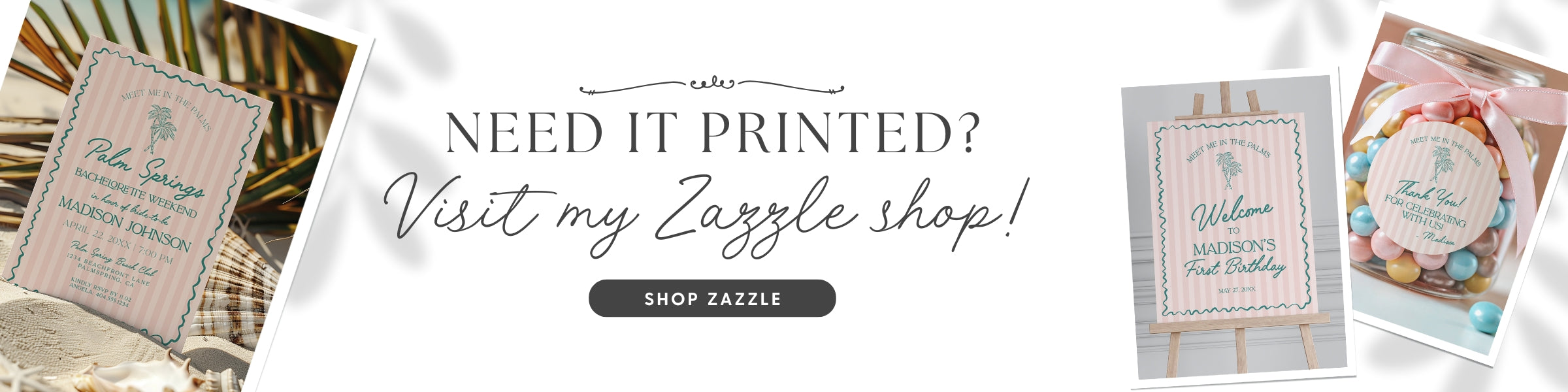 Whether you love to DIY your party decor or prefer your party supplies printed & ready to go, we’ve got you covered! Shop our Zazzle shop for printed party decor to find the perfect design for your next celebration.
