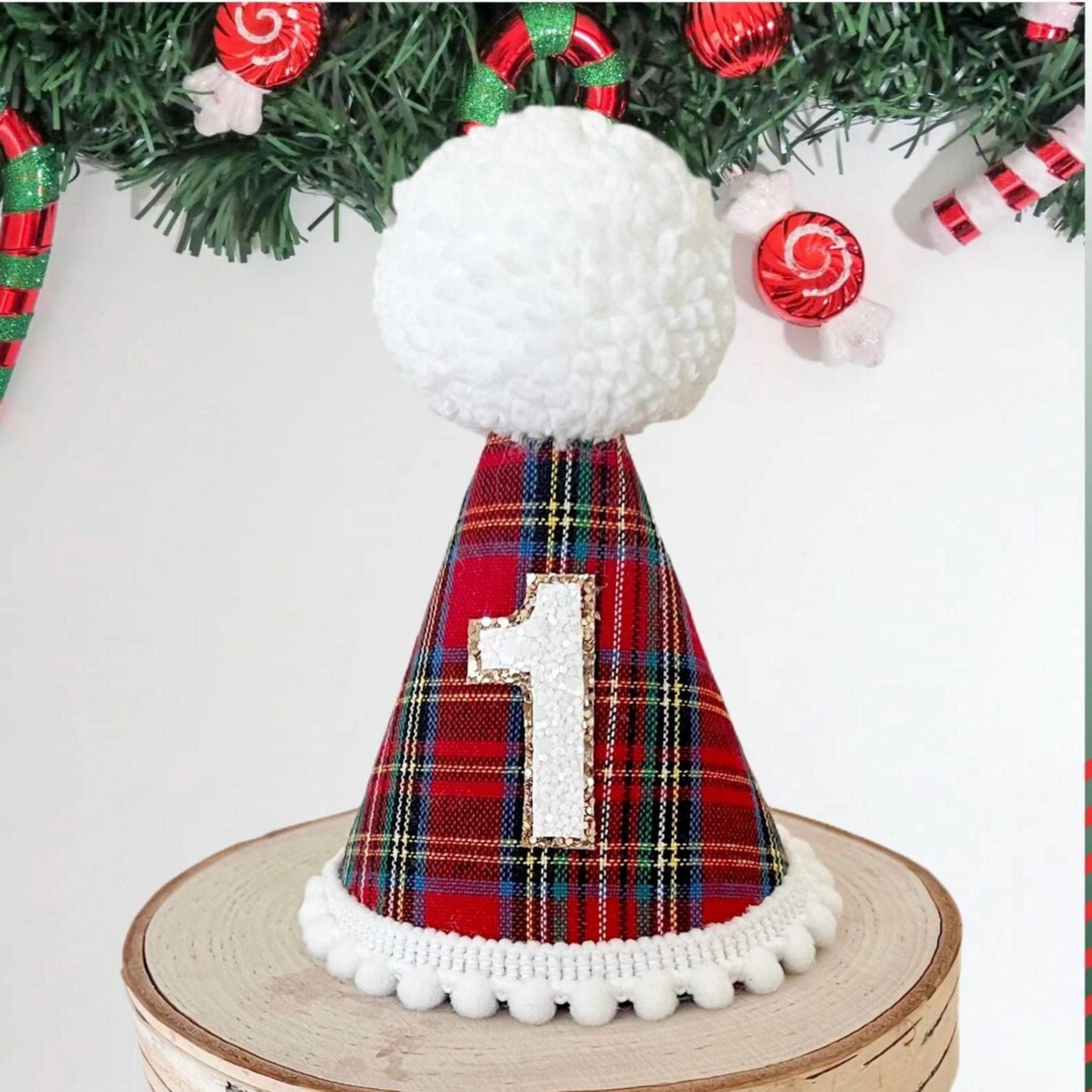 Red Tartan Plaid Christmas Bear 1st Birthday Milestone Banner Template
