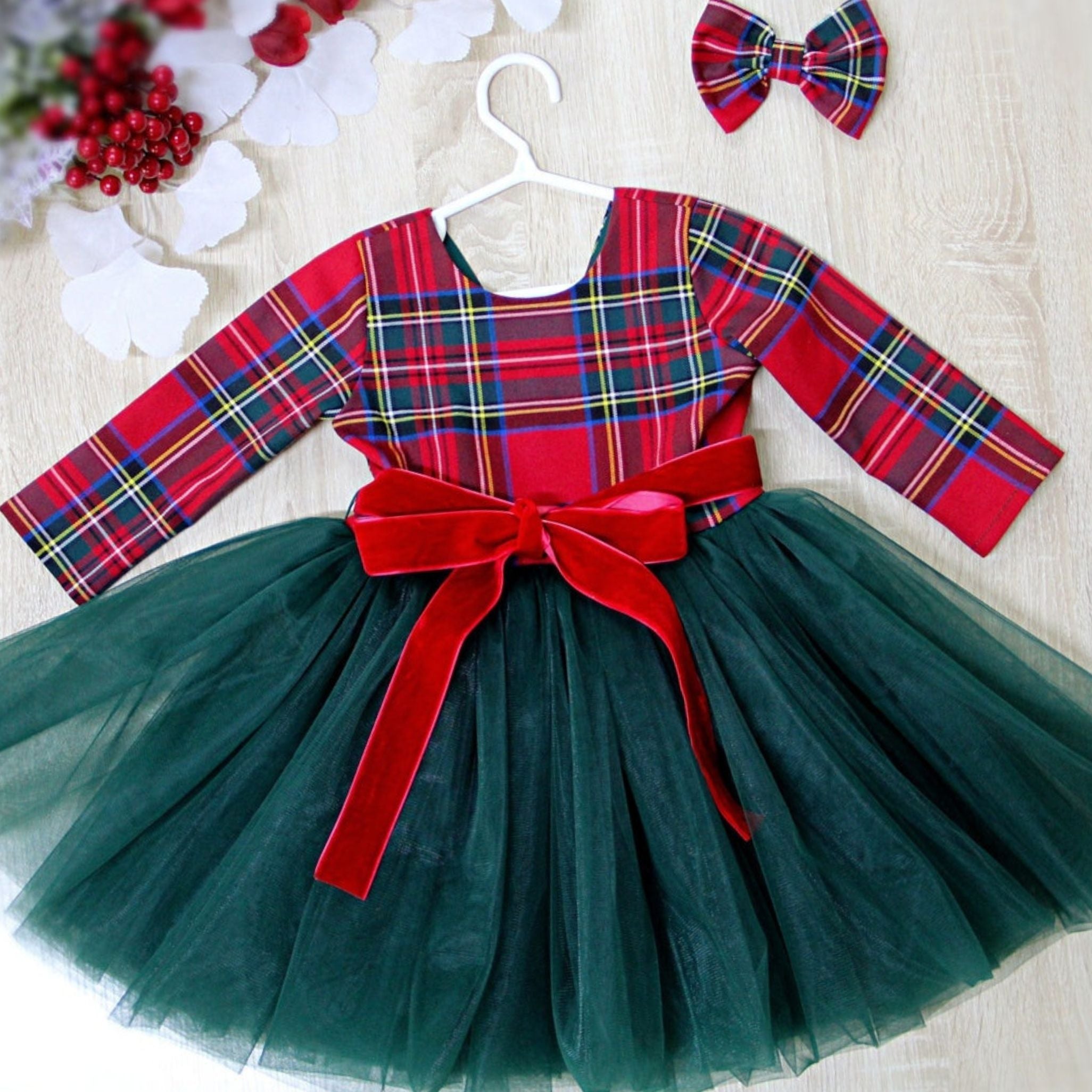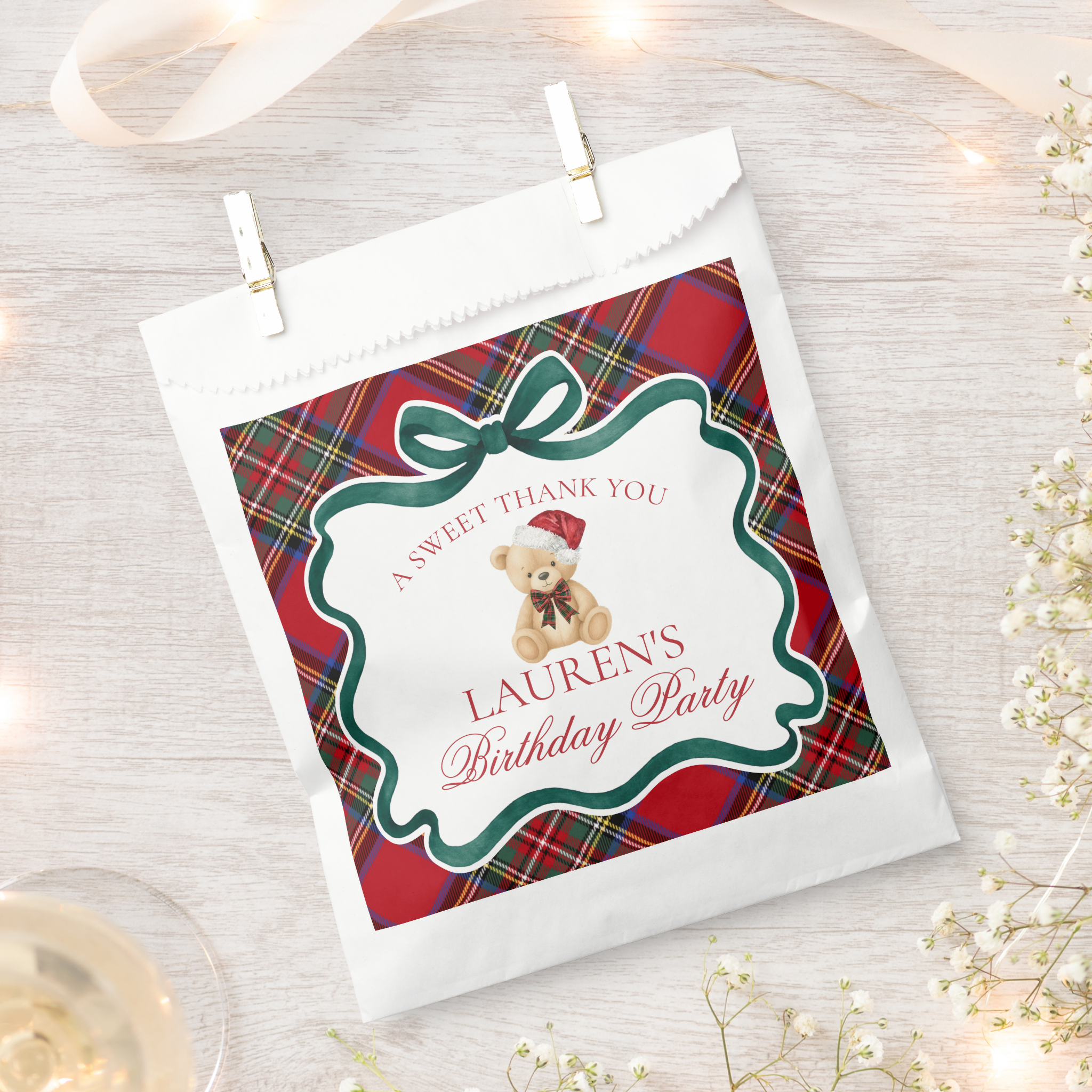 Red Tartan Plaid Christmas Bear Birthday Bundle Template
