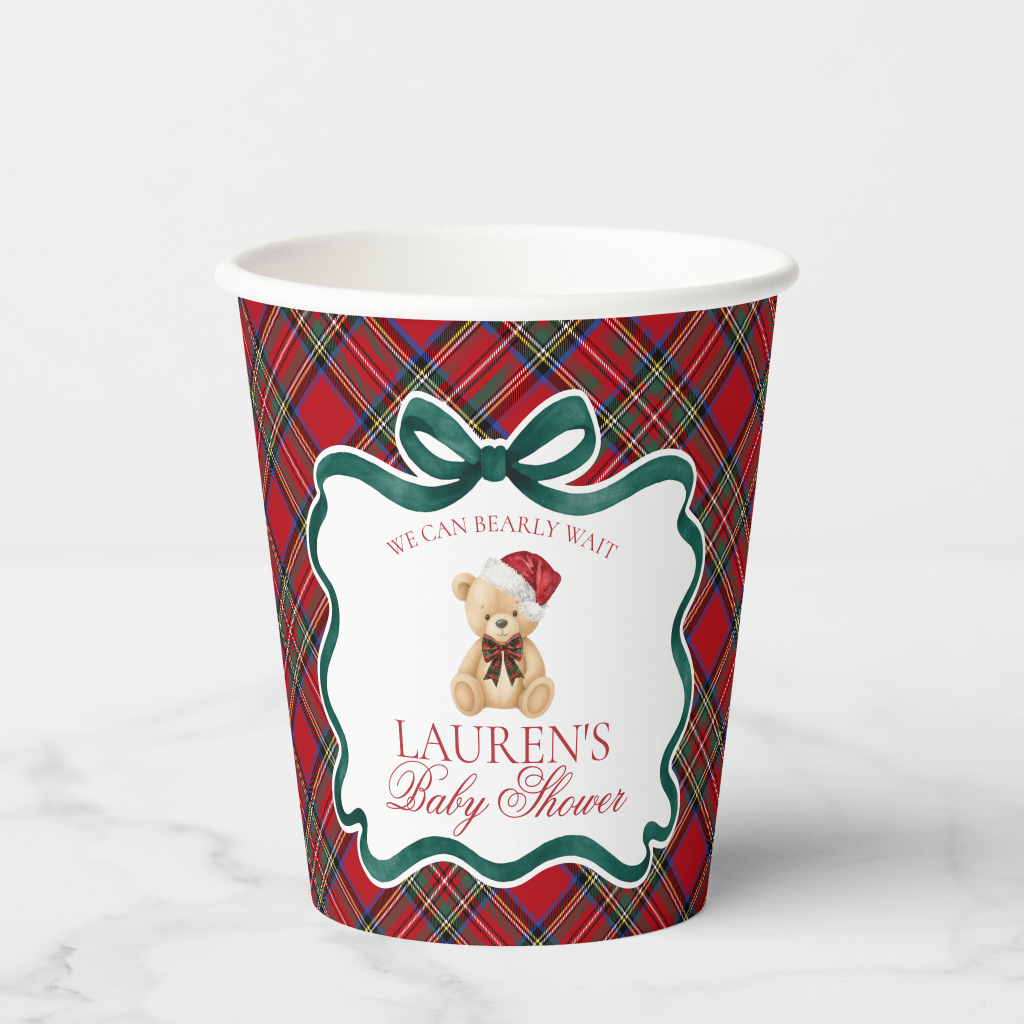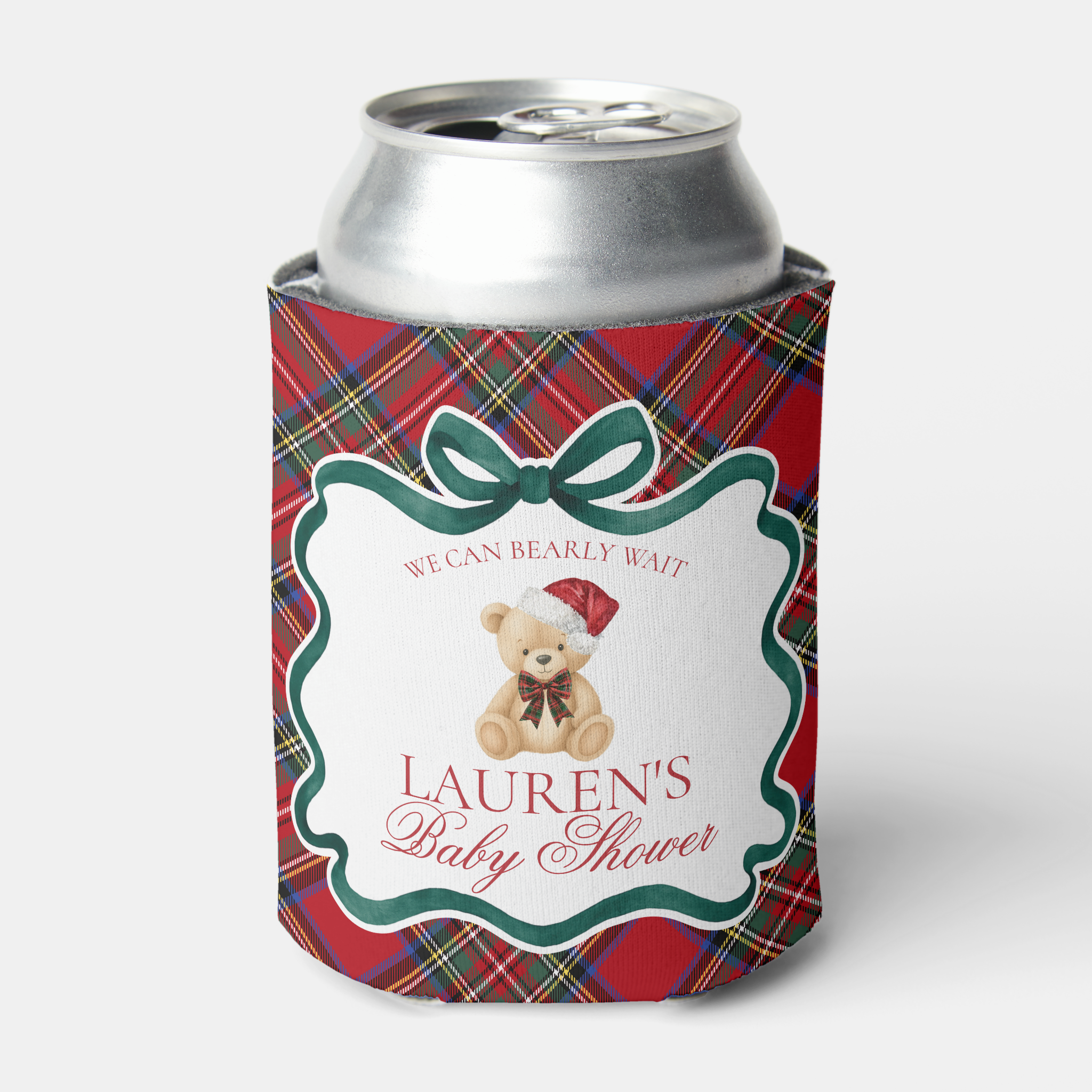 Red Tartan Plaid Christmas Bear Baby Shower Bundle Template