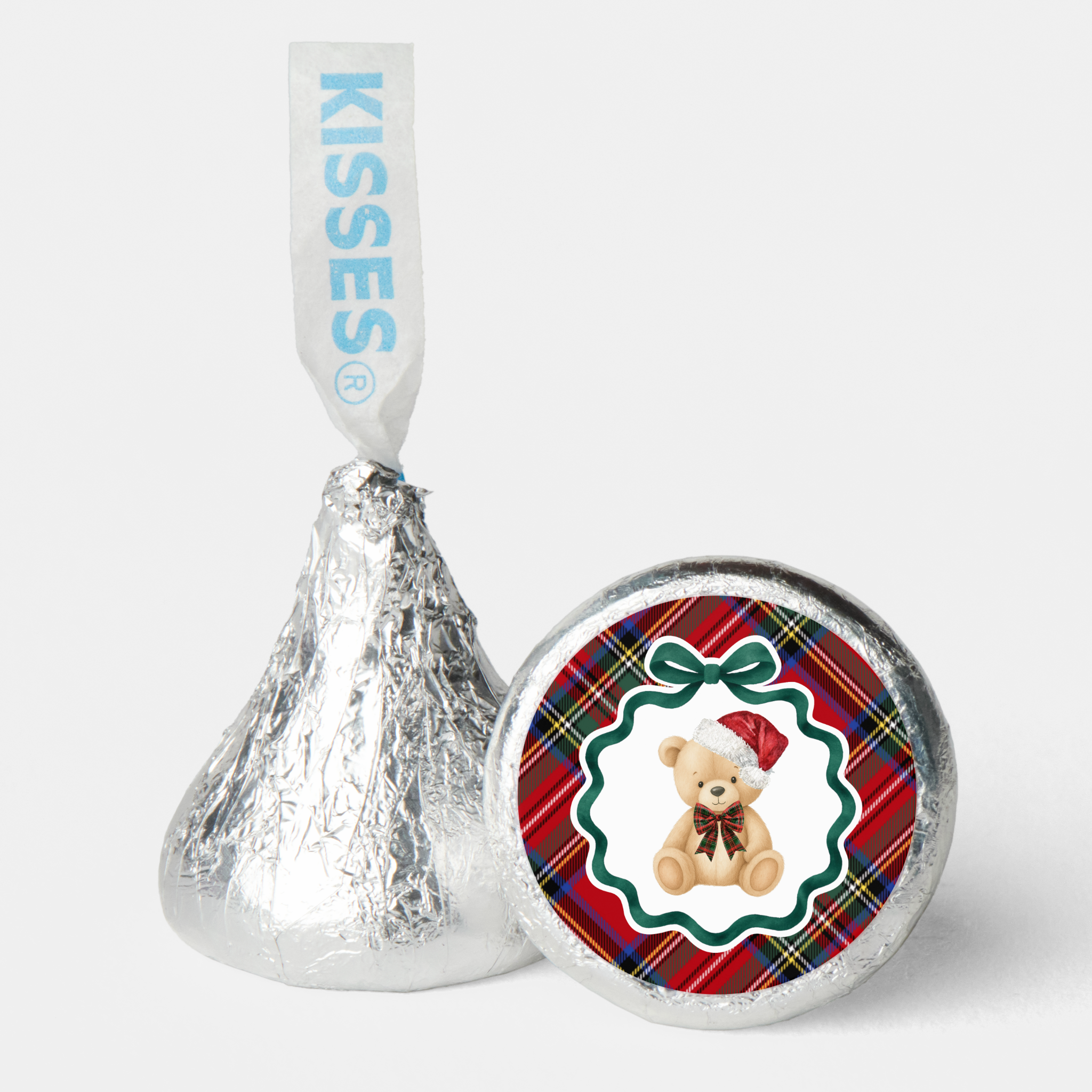 Red Tartan Plaid Christmas Bear Birthday Party Favor Tags Template