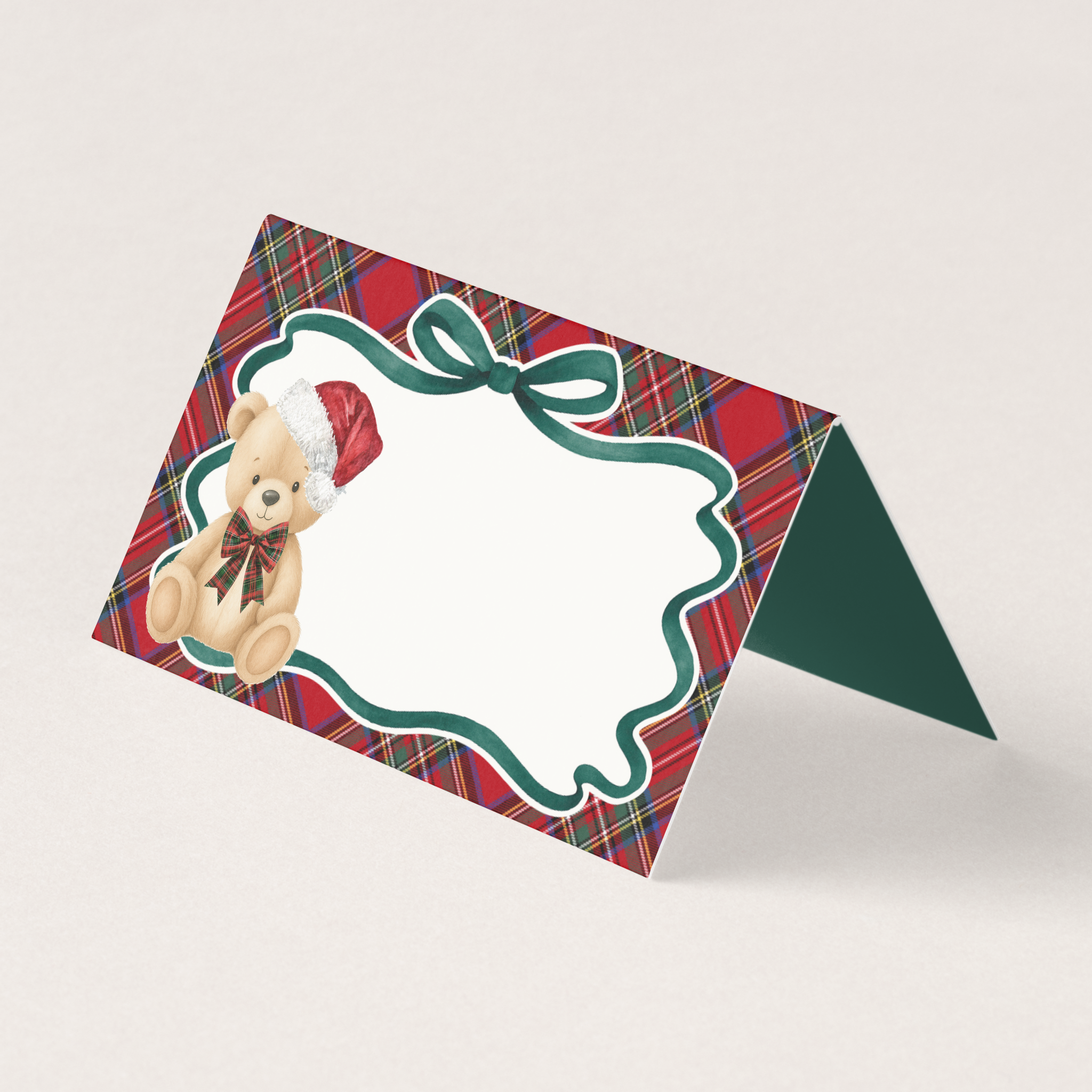 Red Tartan Plaid Christmas Bear Place Cards Template