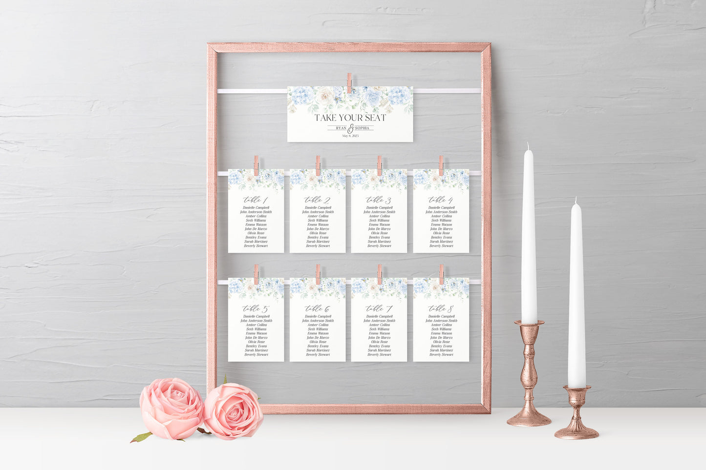 Blue Floral Wedding Seating Chart Cards Printable Template
