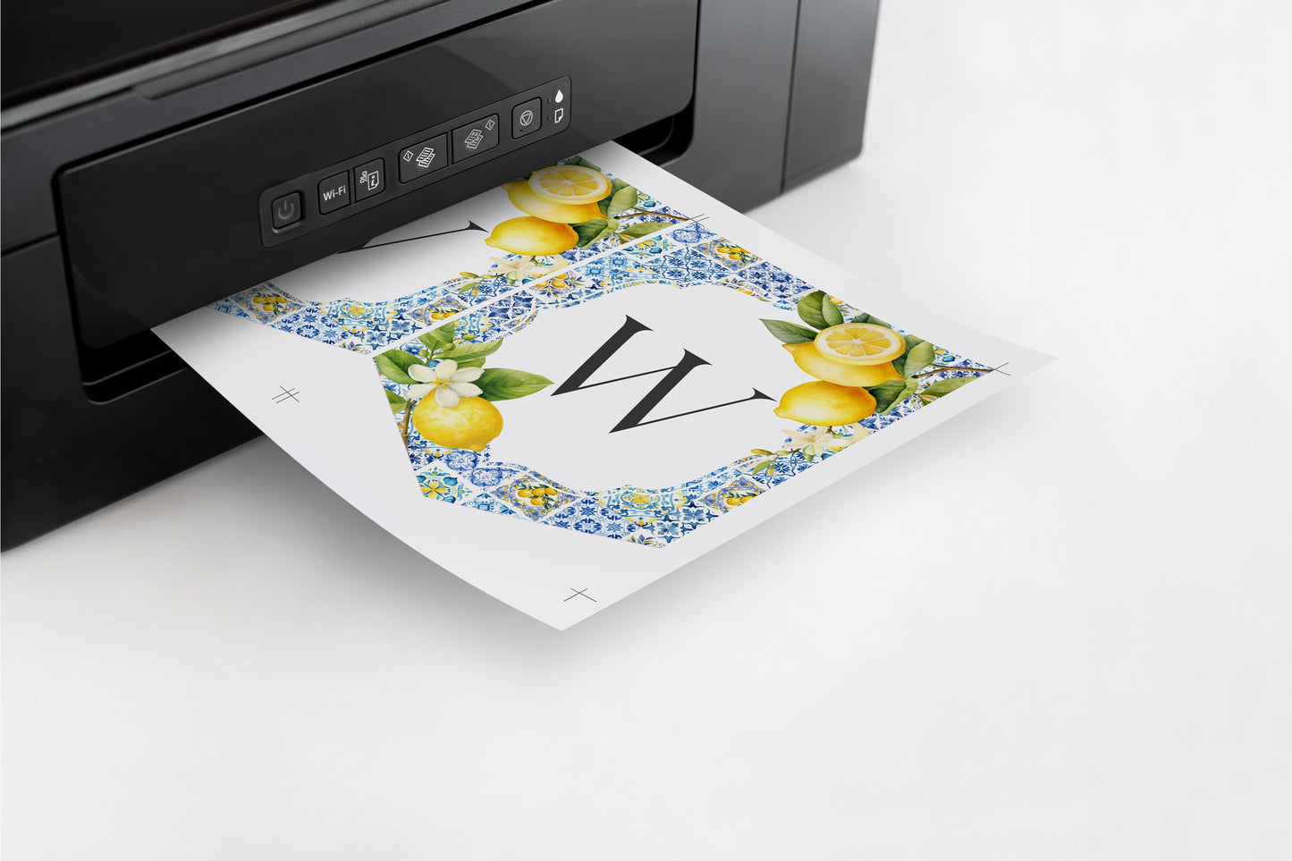 Amalfi Coast Baby Shower Cupcake Toppers Printable Template, Lemon Citrus Mediterranean shower decor with blue tiles, Italian theme party