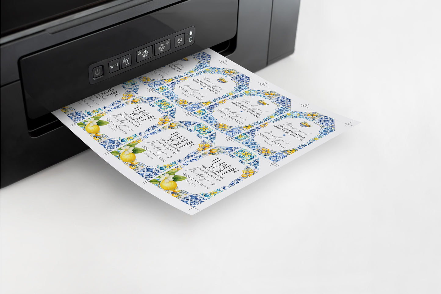 Amalfi Coast Thank You Card Printable Template, Lemon Citrus Mediterranean decor with blue tiles, Coastal Italian theme tuscan beach party