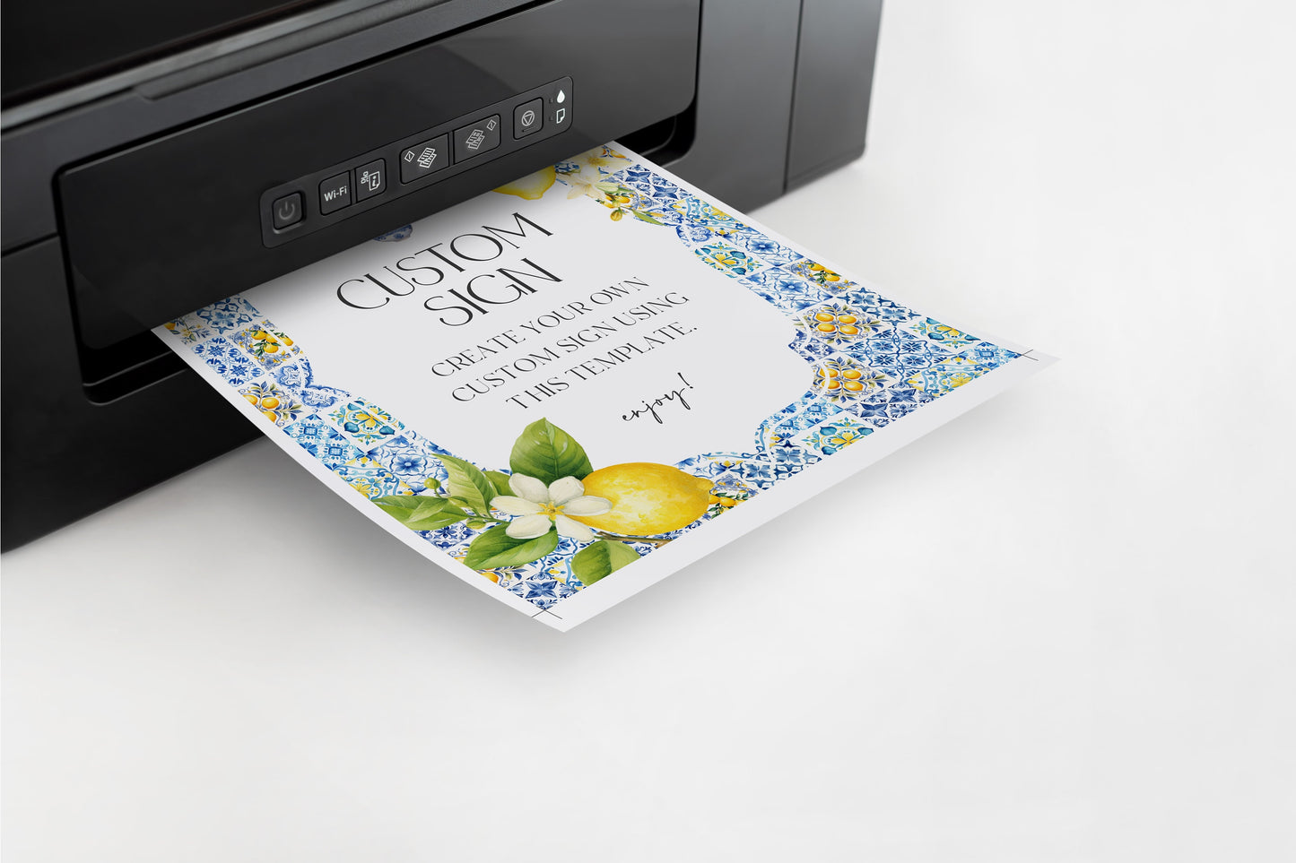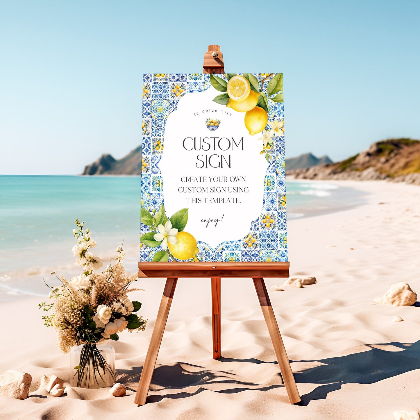 Amalfi Coast Custom Sign Printable Party Decor for Baby or Bridal Shower, Citrus Mediterranean bday decor coastal blue tiles Italian theme