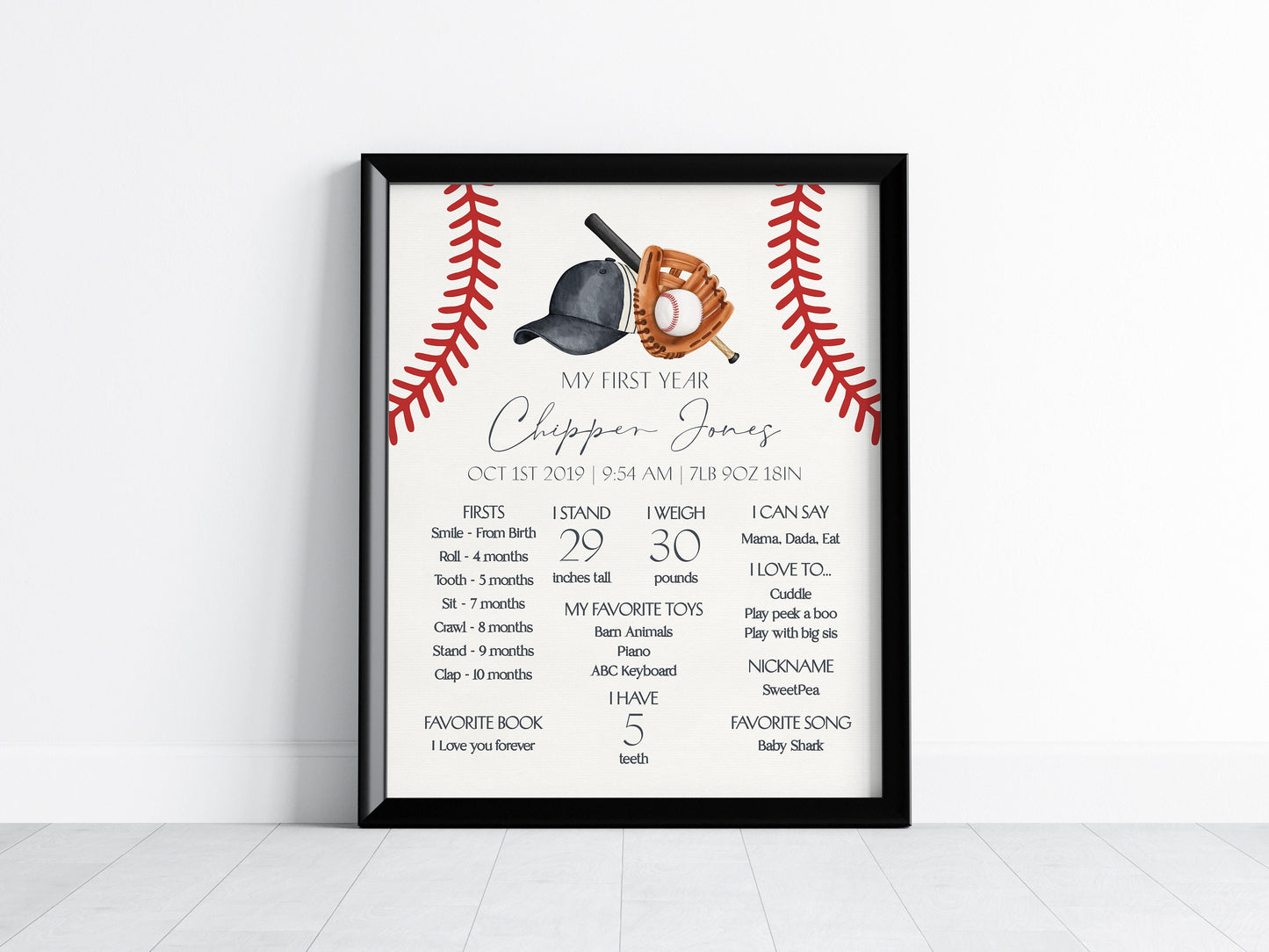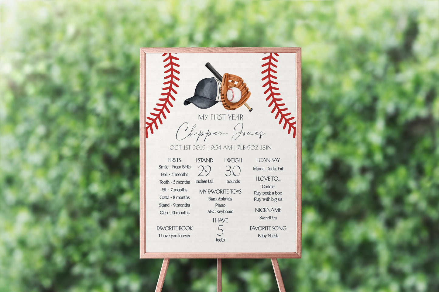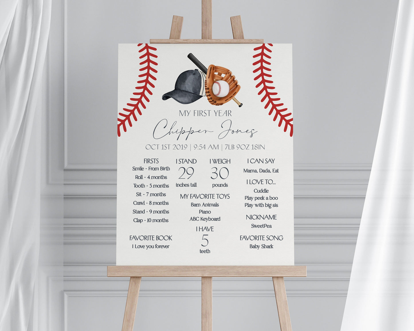 Baseball First Year Milestone Sign Printable Template