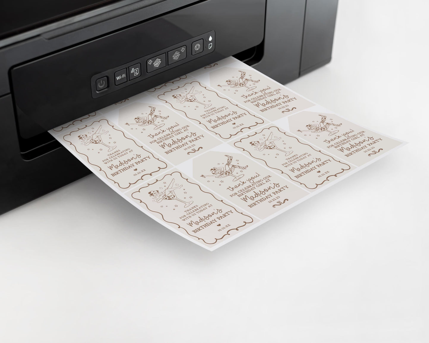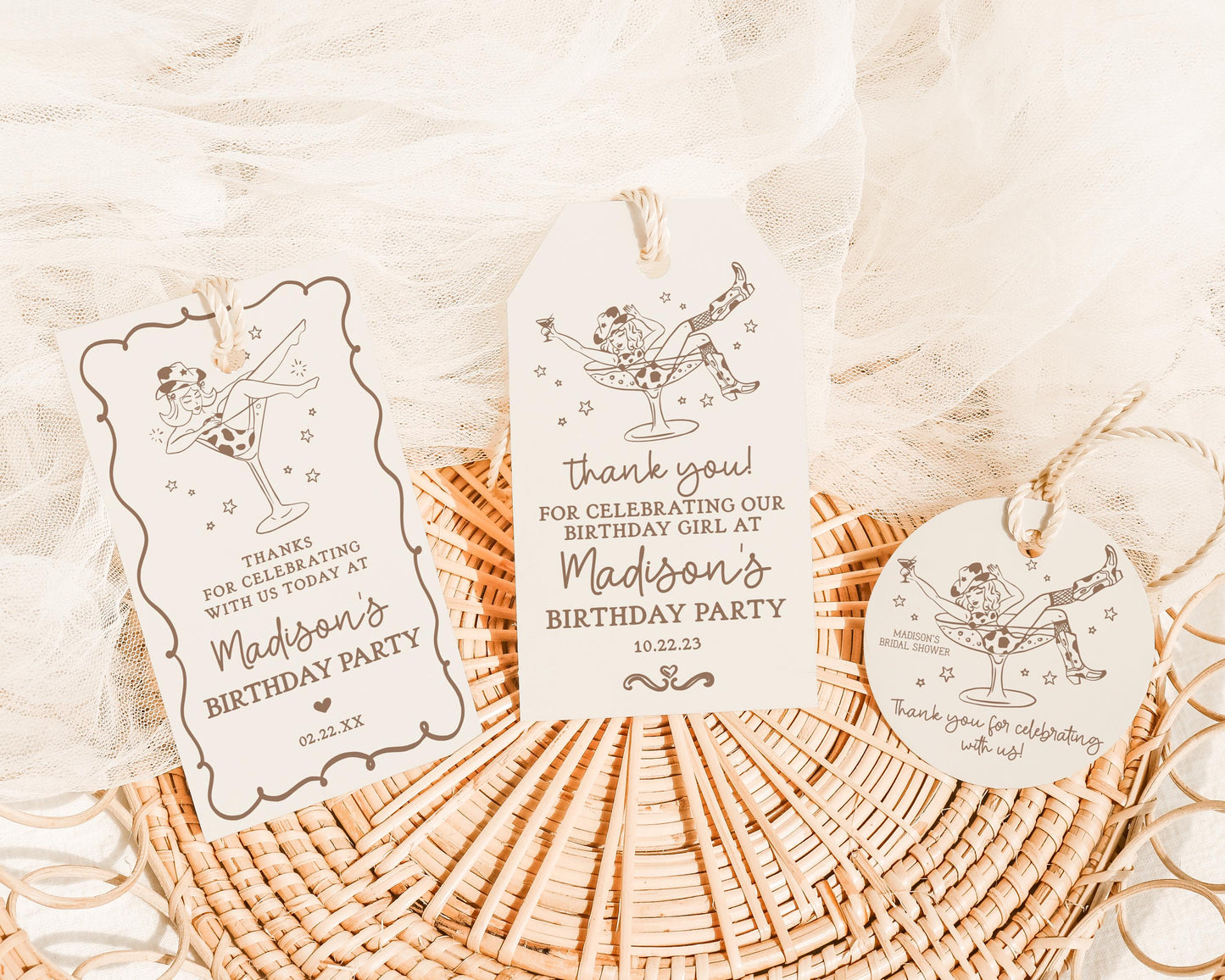 Beige Cocktails and Cowgirls Birthday Favor Tags Template