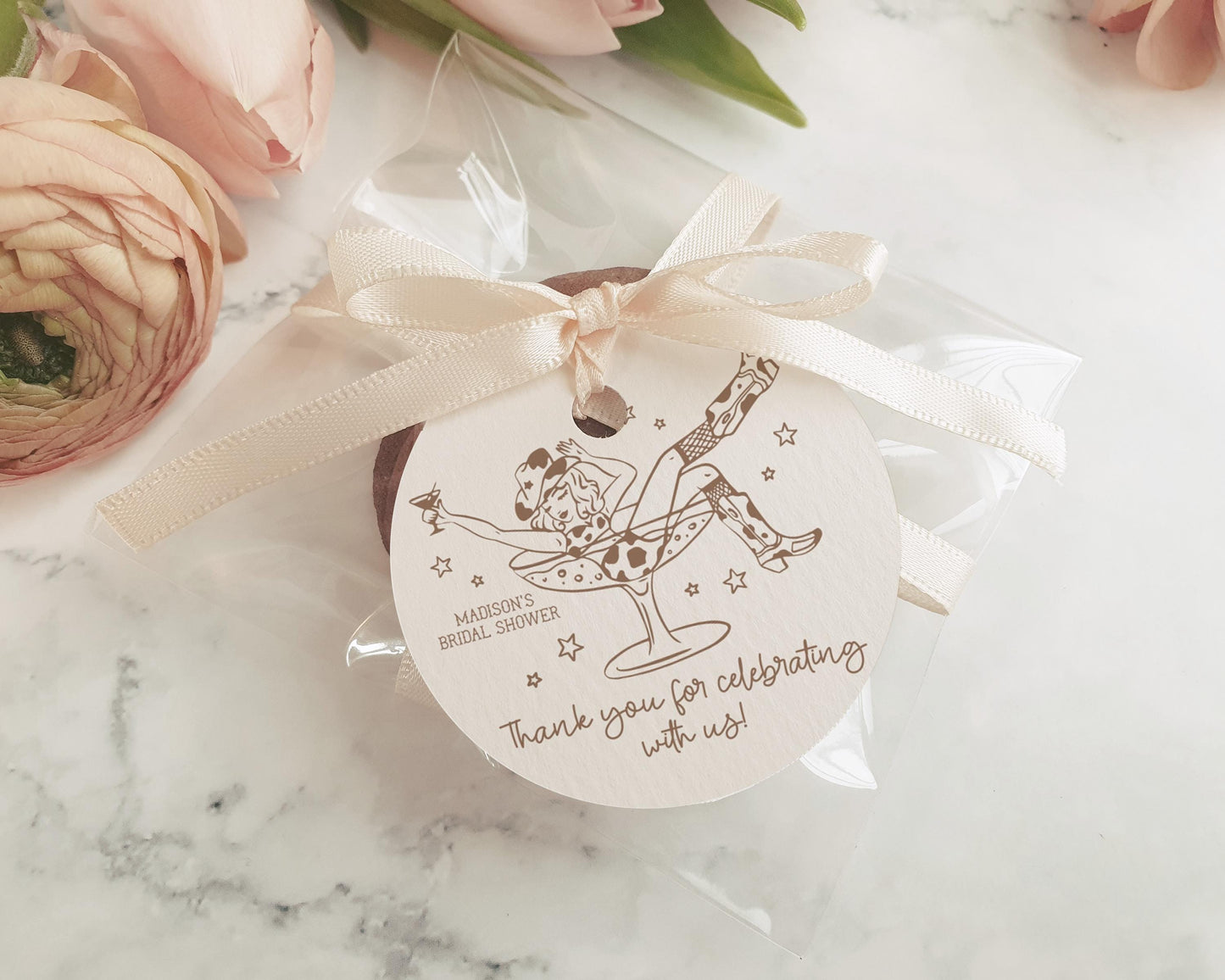 Beige Cocktails and Cowgirls Bridal Shower Favor Tags Template