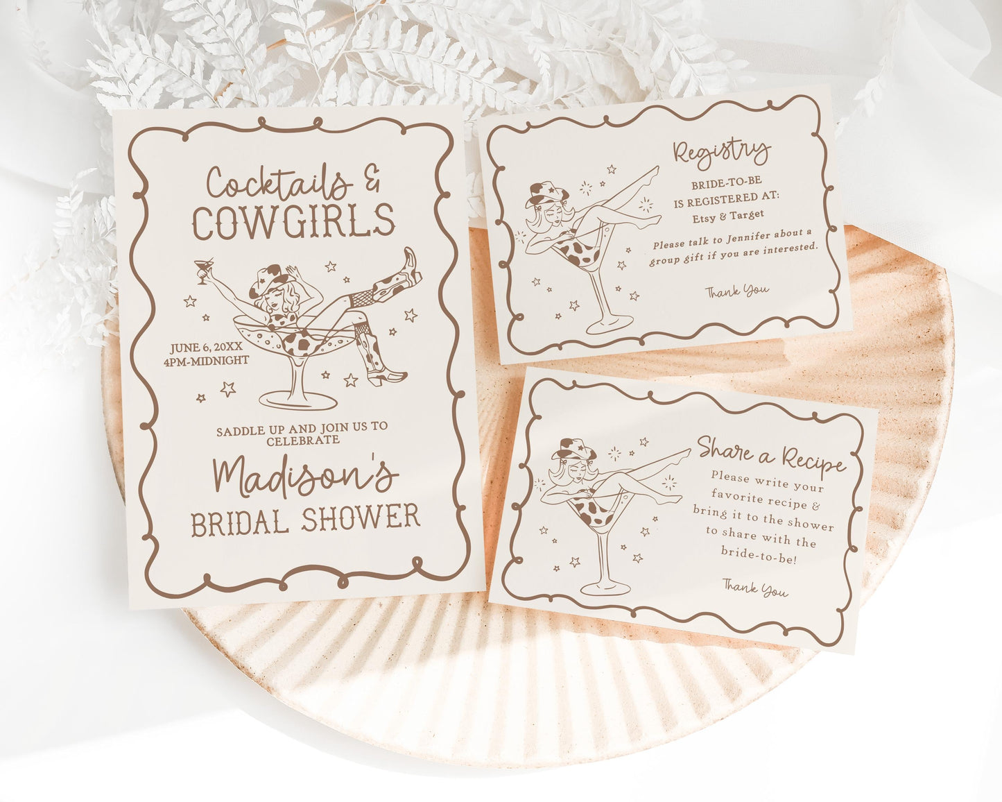 Beige Cocktails and Cowgirls Bridal Shower Bundle Template