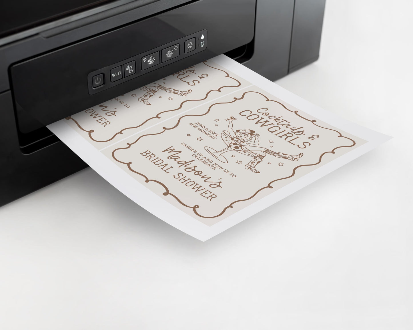 Beige Cocktails and Cowgirls Bridal Shower Favor Tags Template