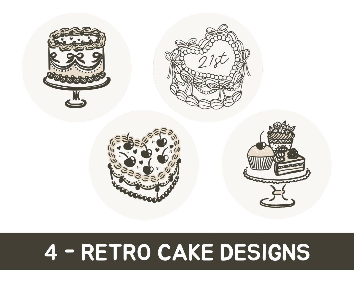 Beige Retro Heart Coquette Cake Birthday Bundle Template