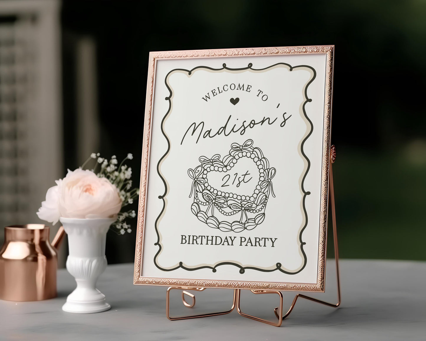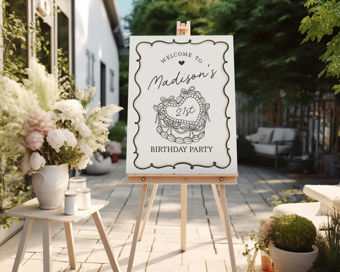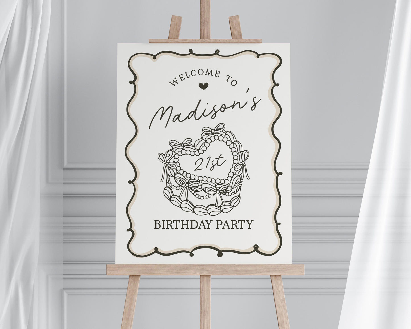 Beige Coquette Heart Cake Birthday Welcome Sign Printable Template