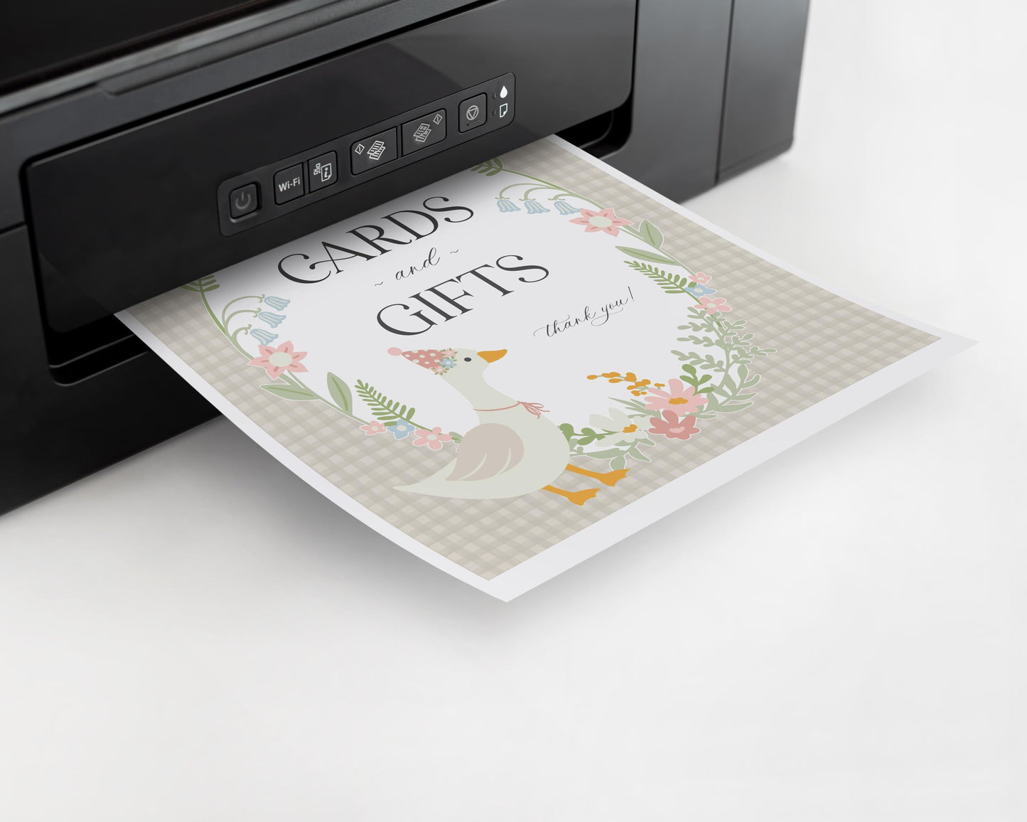 Beige Floral Silly Goose Cards & Gifts and Favors Sign Printable Template, Little Duck Girl Birthday, Pastel Gingham Baby Sprinkle WP1025