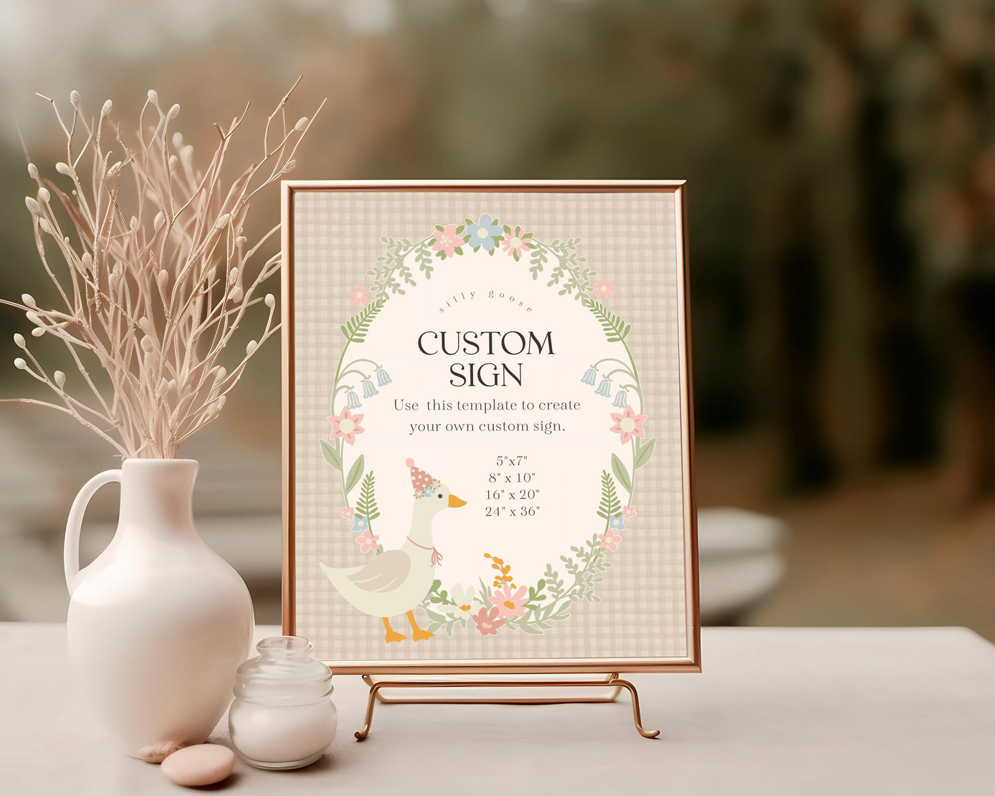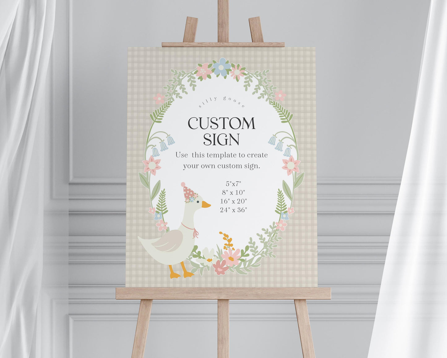 Beige Floral Silly Goose Custom Sign Printable Template, Little Duck Theme Girl Birthday Party, Pastel Gingham Baby Shower Sprinkle WP1025