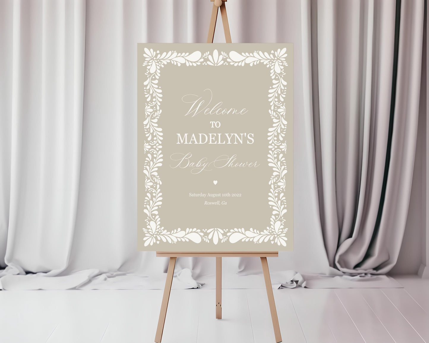 Beige Talavera Baby Shower Welcome Sign Template, Gender Neutral Spanish Tile Mexican Baby Shower Fiesta Cielito Lindo Baby Sprinkle WP1020