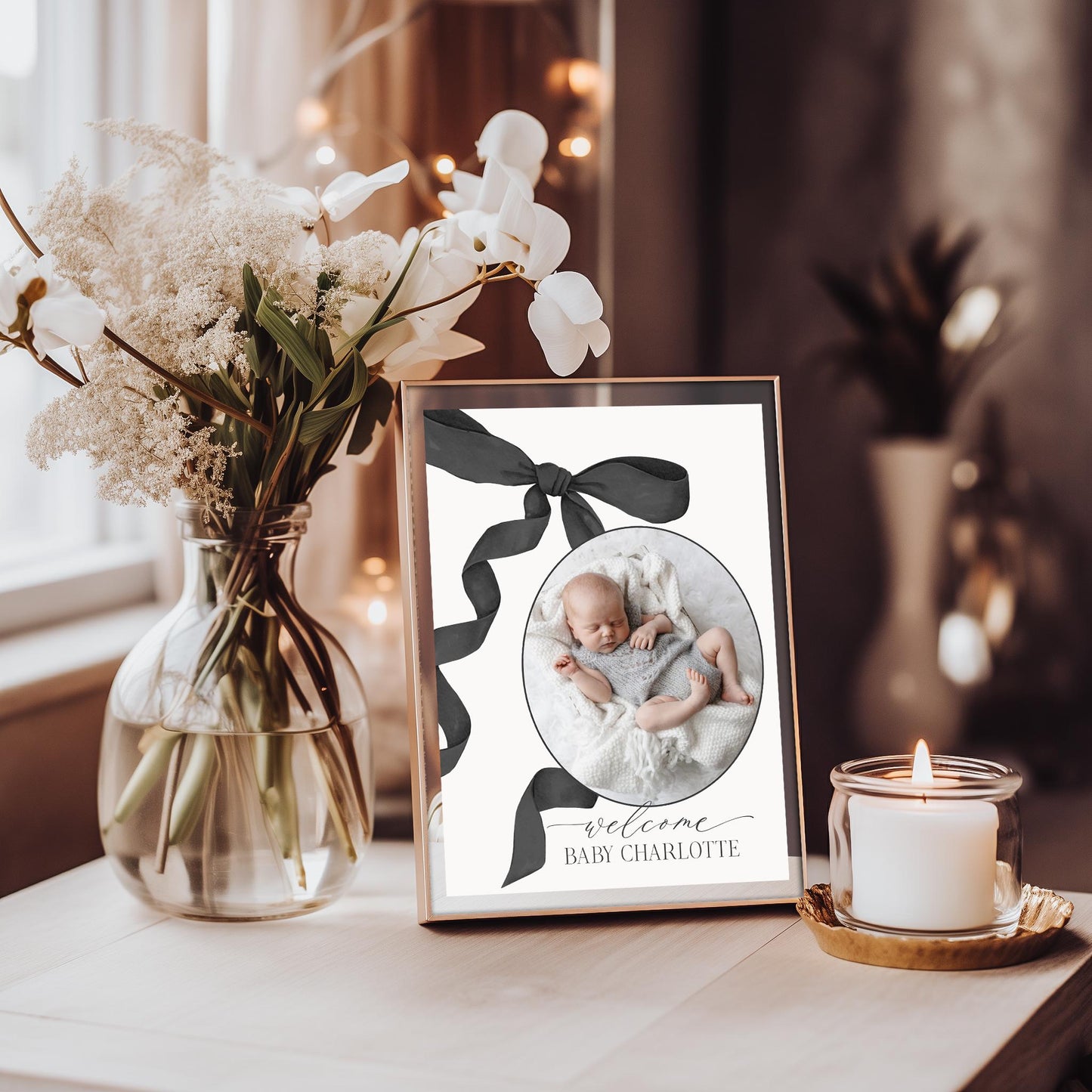 Black Bow Custom Sign Printable Party Decor for Bridal Shower, preppy coquette bow theme baby shower for fancy wedding