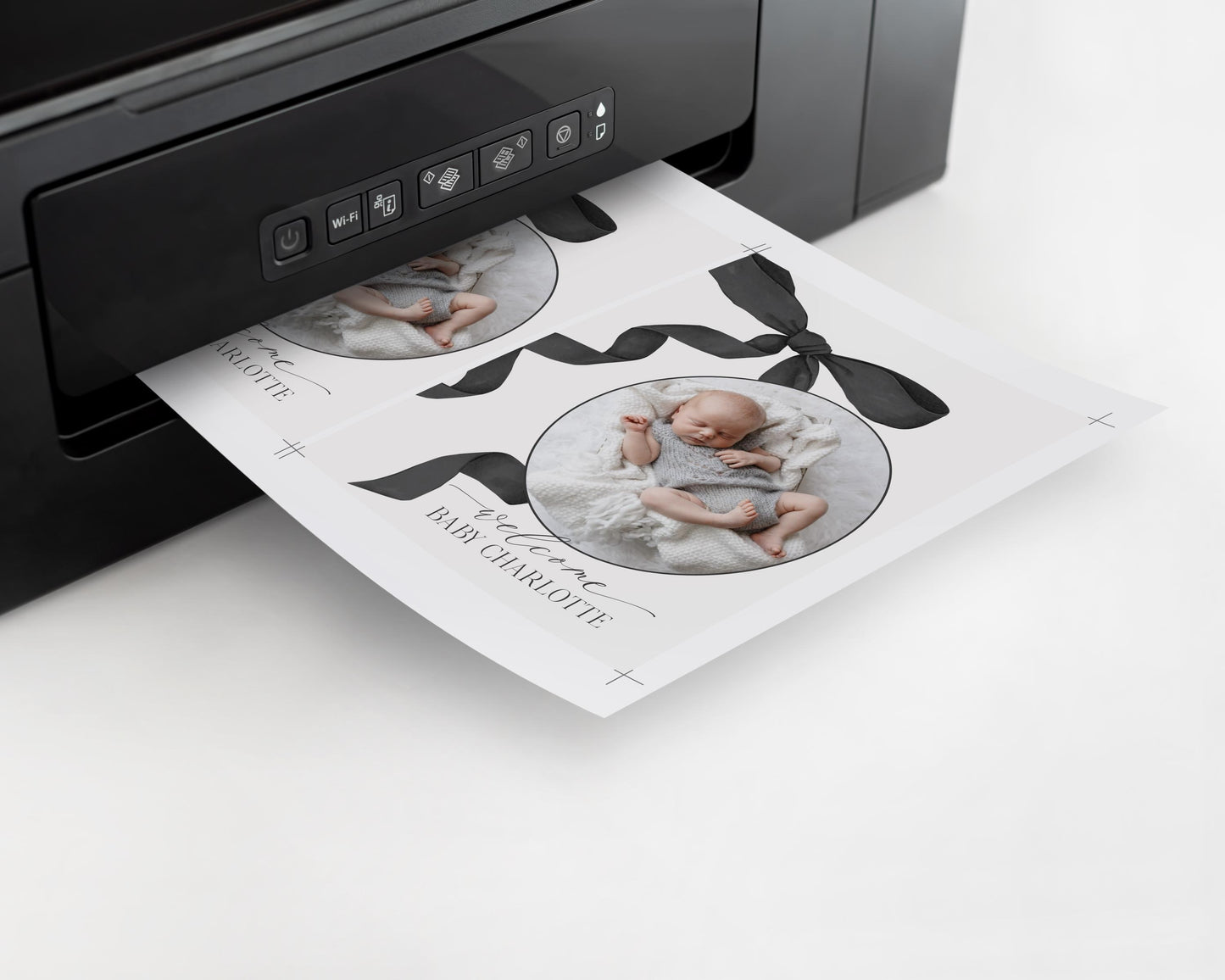 Black Bow Baby Shower Favor Tags Printable Template, preppy coquette bow theme party for fancy southern girl, grandmillenial baby sprinkle