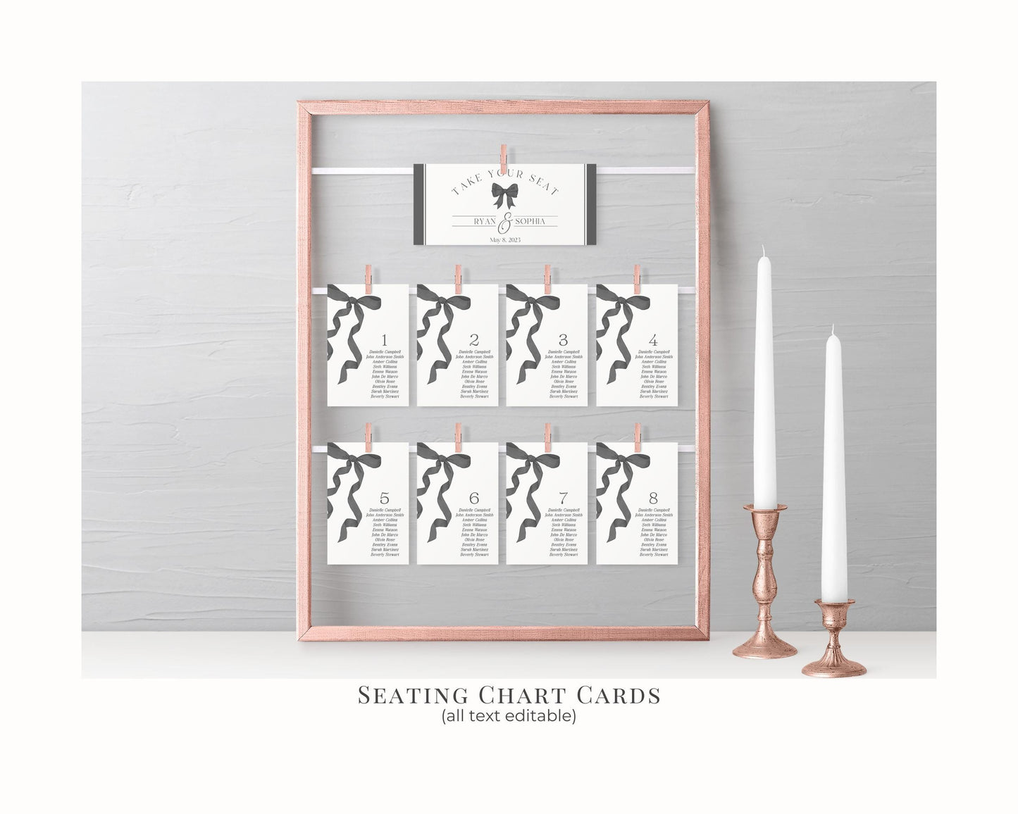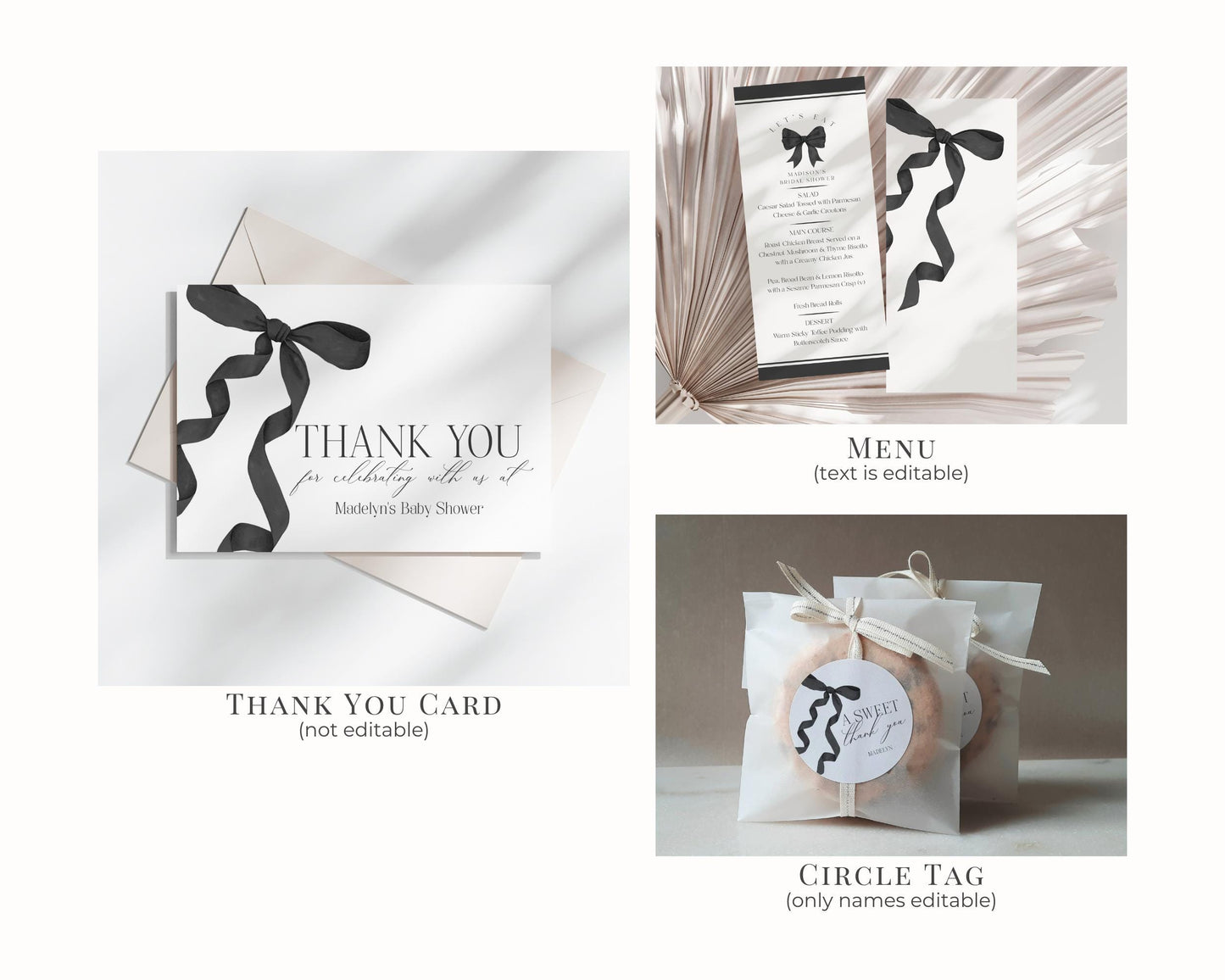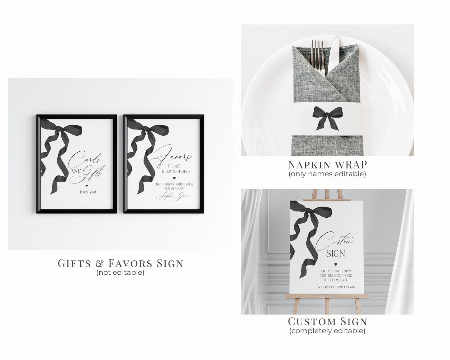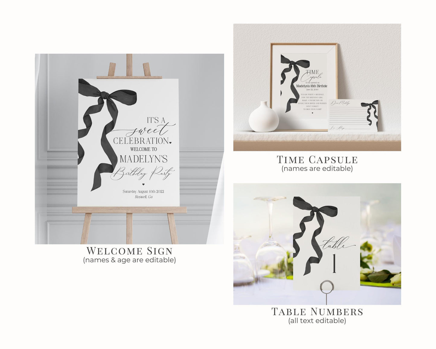 Add some classic elegance to your next celebration with our Black Bow theme party decor. Featuring a fancy black coquette bow on a warm white background, this design effortlessly combines classy and preppy elements. Perfect for the grand millennial style.