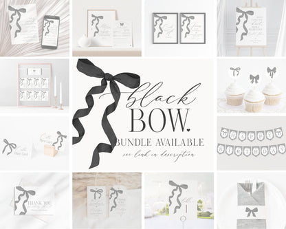 Black Bow Baby Shower Bundle Printable Template, Watercolor preppy coquette bow theme party for fancy southern girl fancy grandmillenial bow
