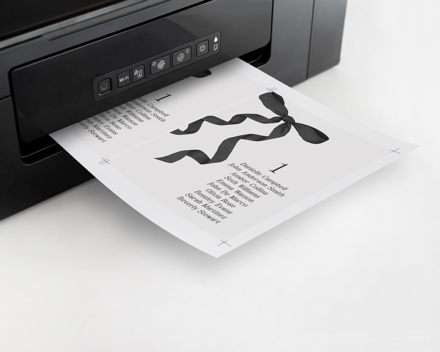Black Bow Place Cards for Baby Shower or Birthday Party Printable Template, preppy coquette bow theme wedding for fancy southern bride