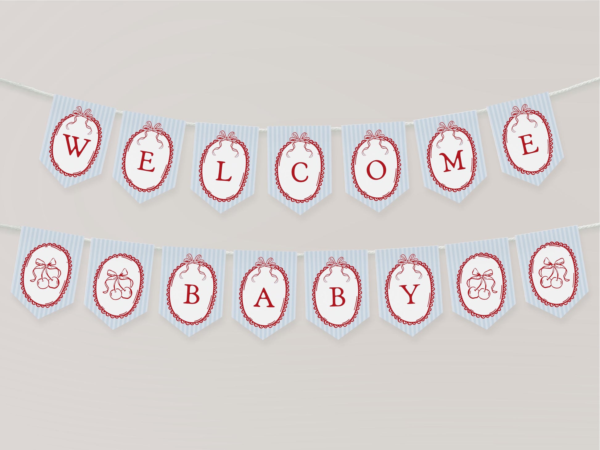 Blue Cherry Coquette Bow Baby Shower Bundle Template