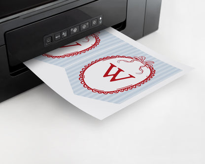Blue Cherry Coquette Bow Baby Shower Favor Tags Template, Retro Cherry on Top Baby Sprinkle, Hand Drawn Party Decor Doodle Cherries WP1039