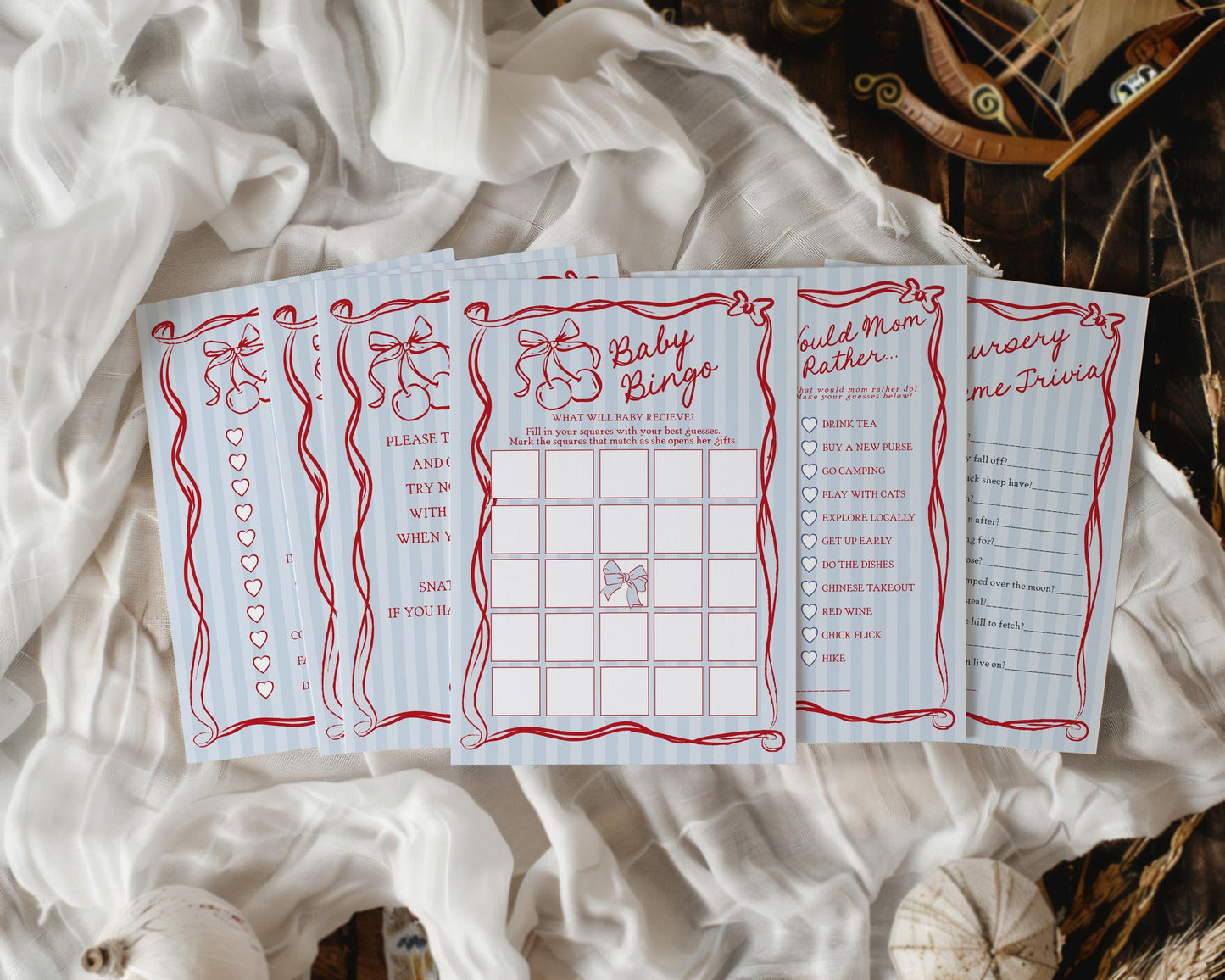 Blue Cherry Coquette Bow Bridal Shower Games Set Template